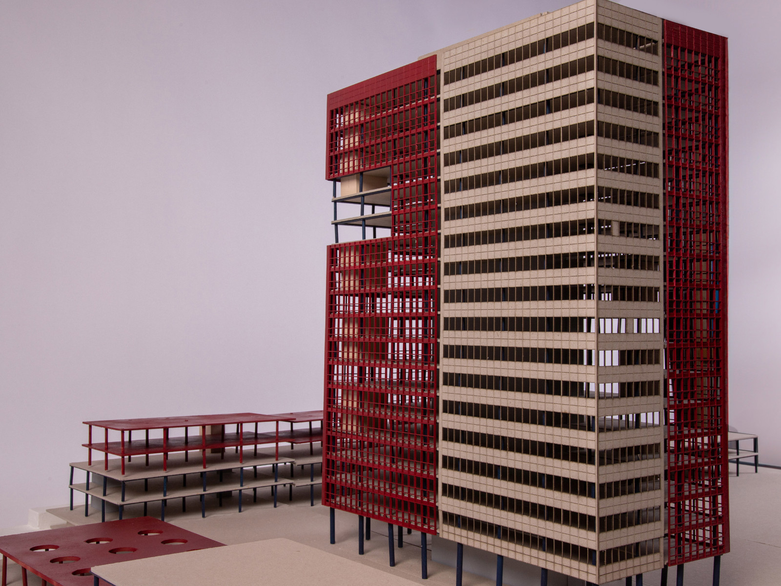 Anne Lise Lizcano Ladegård har undersøkt Økern senter i Oslo og sett på hvordan man kan lage gode kollektivløsninger i en vertikal struktur. Bildet viser modell av prosjektet.