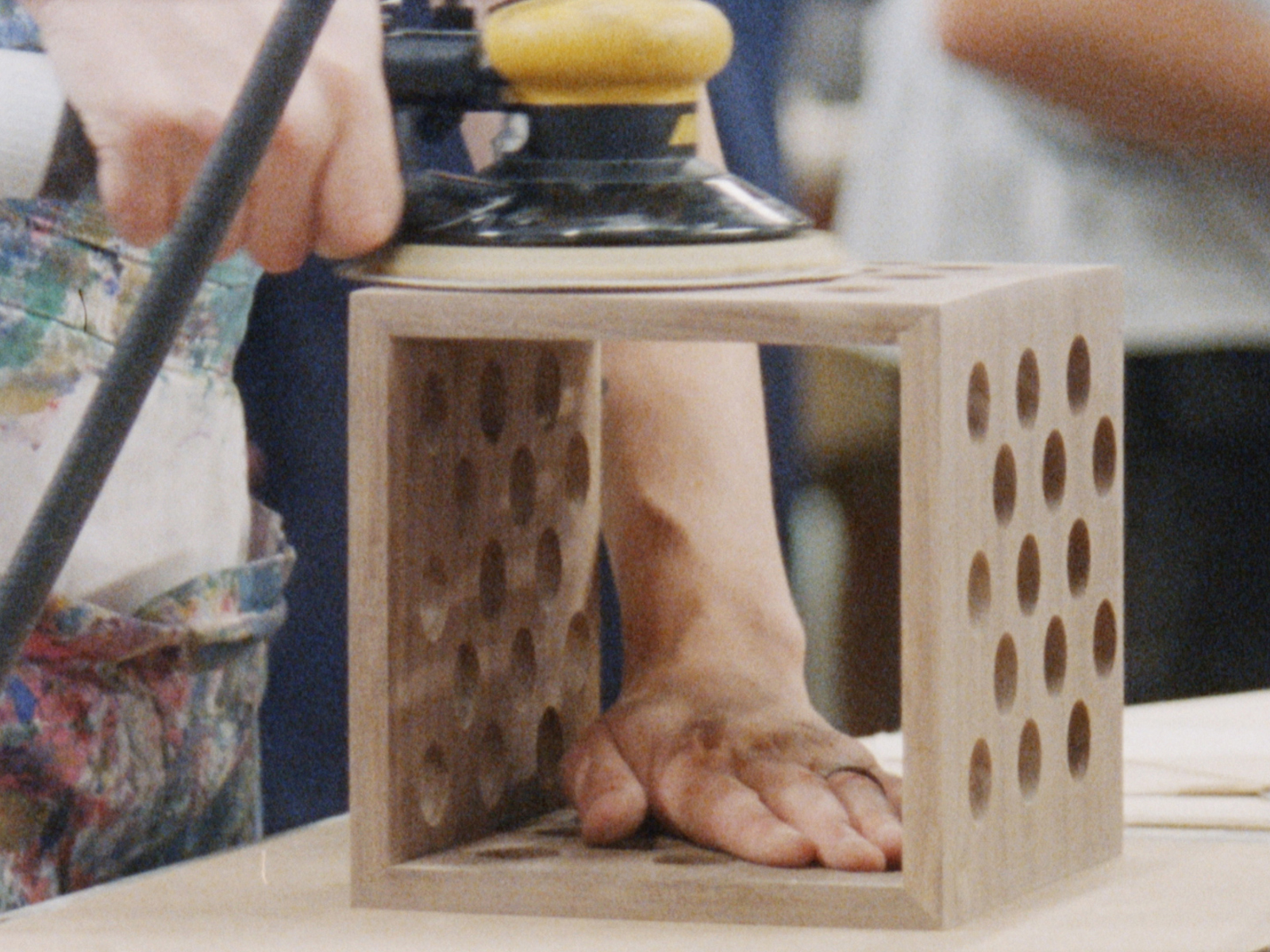 I filmen Architecture Beyond Sight (2019) følger den norske arkitekturhistorikeren og filmskaperen Anna Ulrikke Andersen The DisOrdinary Architecture Project. Her et prosjekt med blinde og svaksynte designstudenter. Boksen med hull er et «kuriositetskabinett», laget av kunstner Clarke Reynolds. Foto: Anna Ulrikke Andersen