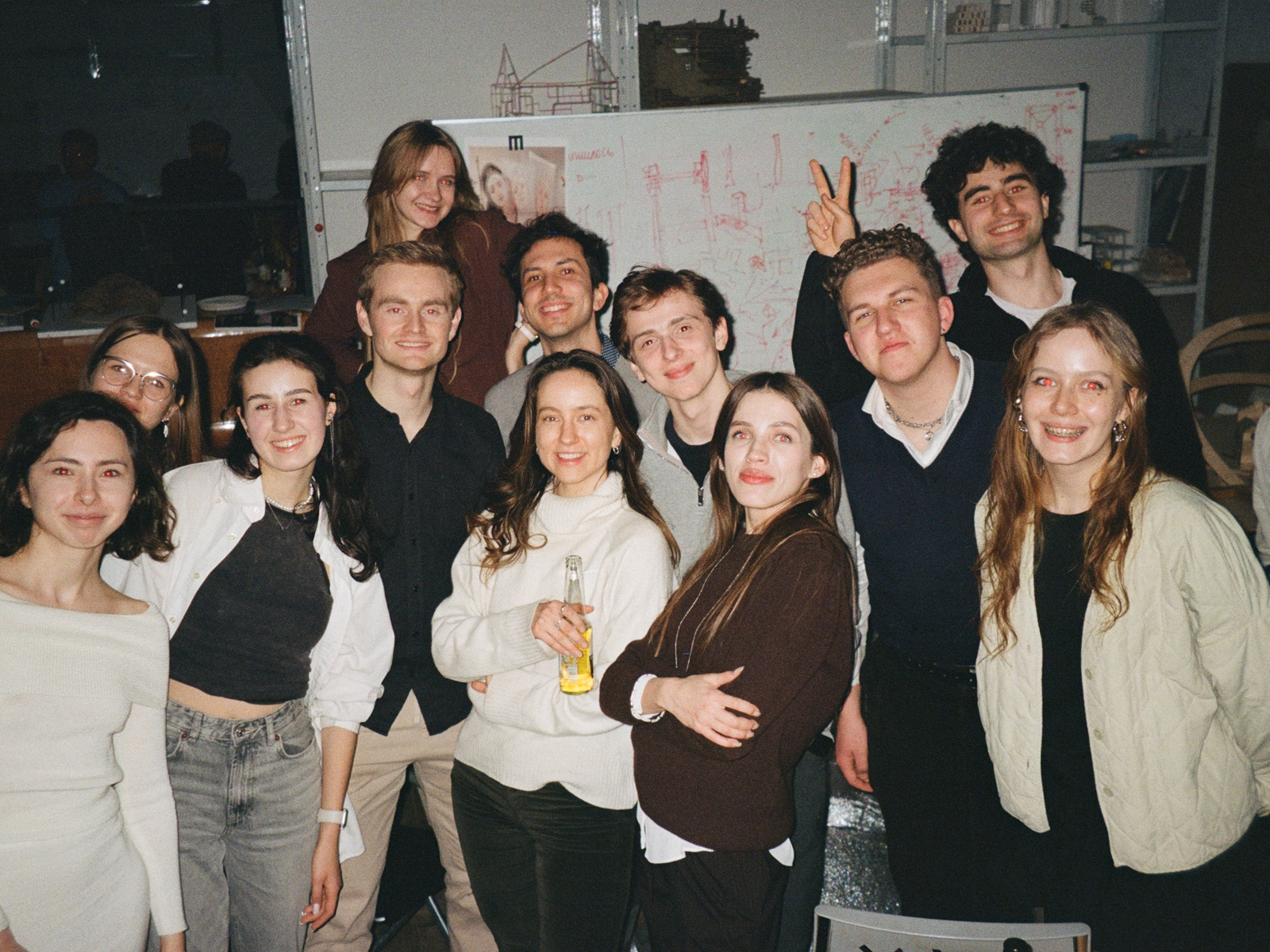 Siste dag av workshop med studenter fra Kharkiv School of Architecture. Mille står i midten (hvit genser med en flaske i hånden), Anders Gjesdal til venstre for henne.
