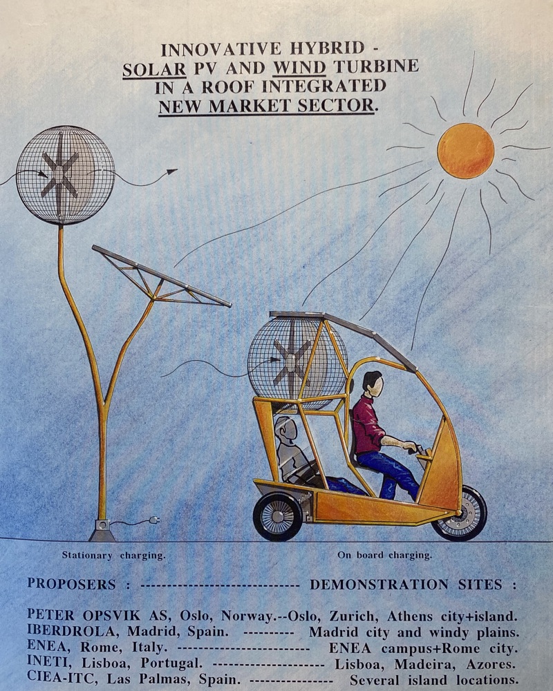 Vi jobbet også med uttesting med partnere i åtte solrike storbyer langs Middelhavet via et EU-prosjekt i 1996. Der tegnet vi i tillegg inn stasjonære ladestasjoner med batterilager som ble forsynt av sol og vind.