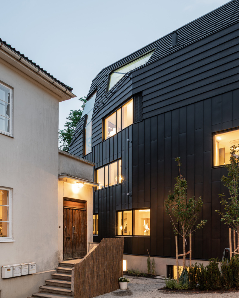 Huset i Geitmyrsveien ligger tett på naboen. – Det er egentlig en nennsom kirurgi, å skulle få et så stort volum på en så trang tomt, sier Johansen.