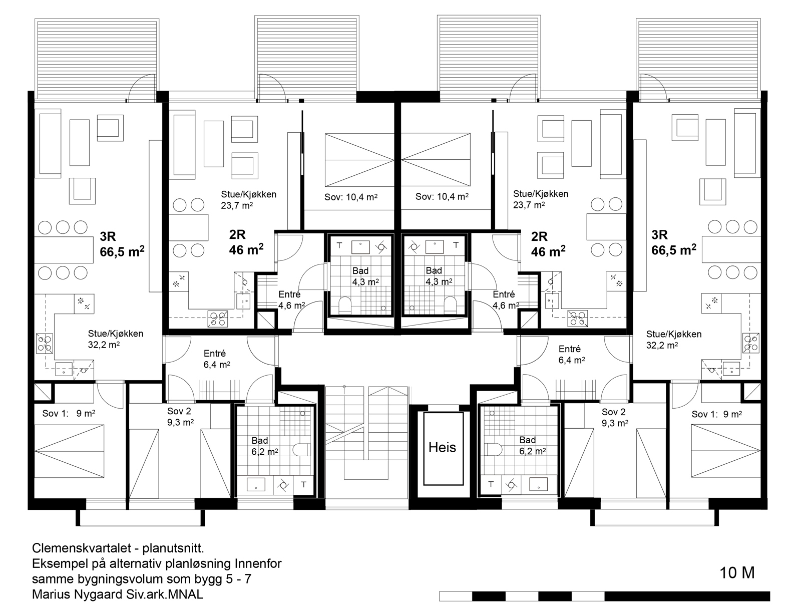 Hovedinntrykket av Clemenskvartalet blir at boligkvaliteter som skal ivaretas i planløsningene gis mindre vekt enn kvartalsmønstre, bygningsvolumer, fasader og uteområder, skriver Marius Nygaard, sivilarkitekt MNAL.