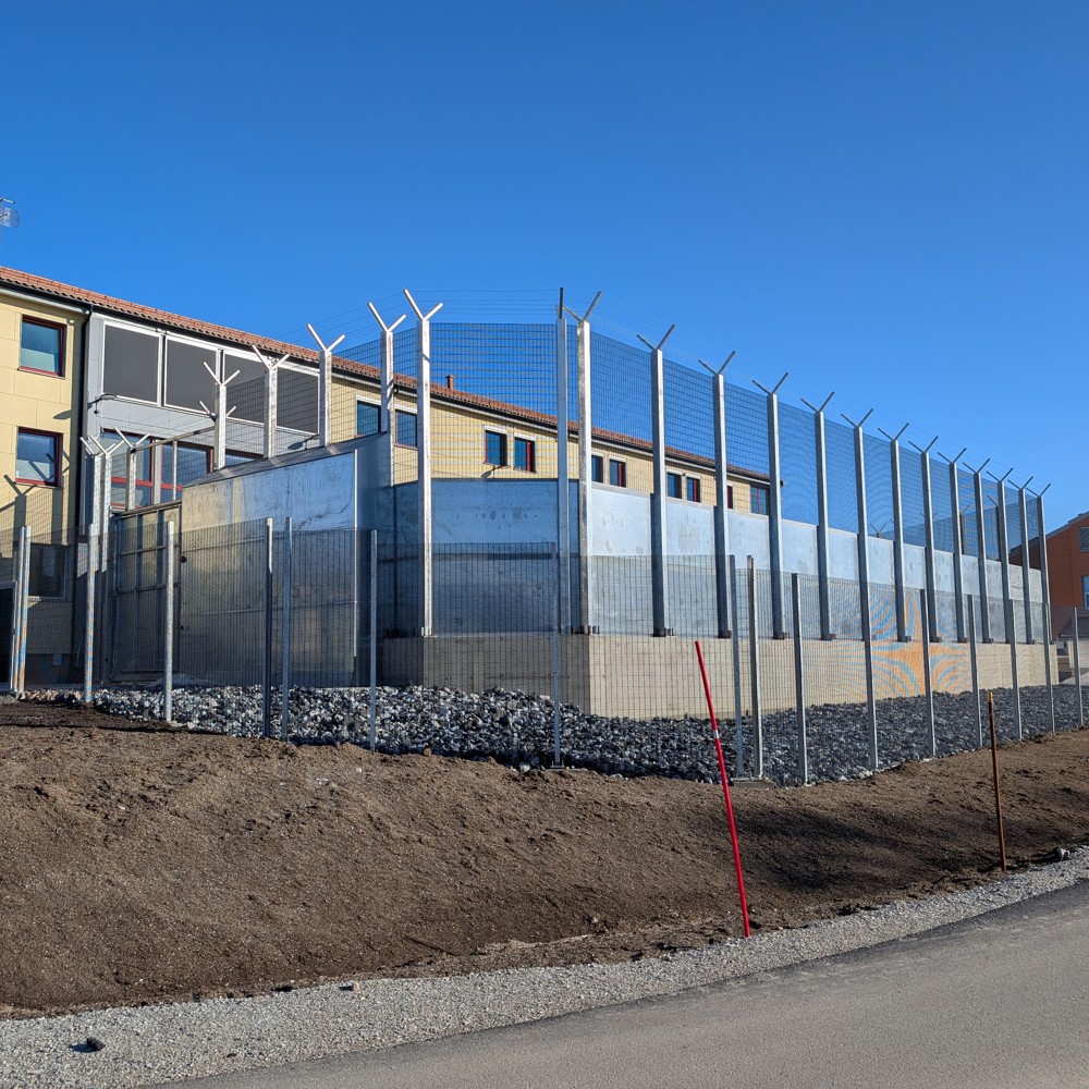 Tilbake til det midlertidige uteområdet: Sikkerhetsposten behandler mennesker med alvorlig psykisk sykdom, hvor noen også kan utgjøre en fare. Den huser også pasienter under tvungent psykisk helsevern. Behovet for sikkerhet er reelt og udiskutabelt, og det midlertidige uteområdet speiler dette.