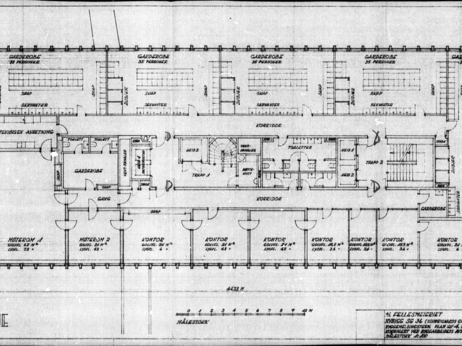 Original plantegning av Landbrukets hus, fjerde etasje.