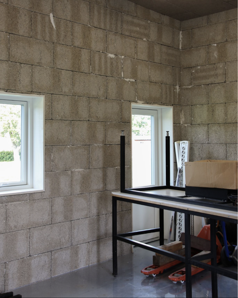 Hampkalkblokker brukt ved Kapacitetscenter Svanemøllen, militærbase i København.