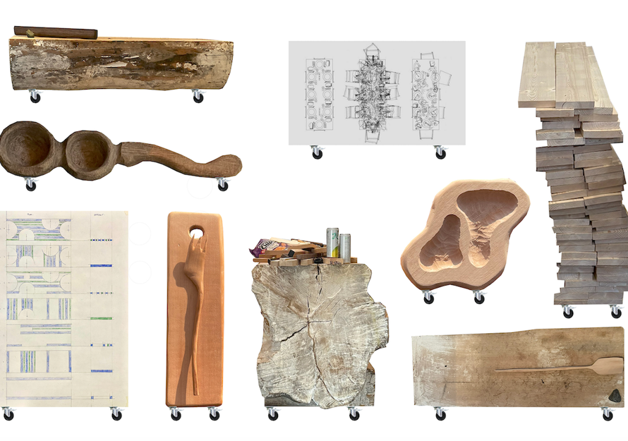 Mobilene er bygget av gjenbrukte materialer fra Nasjonalmuseets utstilling Ny Nordisk. Mat, estetikk og sted, og undersøker hvordan ideer om sted, materiale og fellesskap kan formes gjennom arkitektur i full skala.