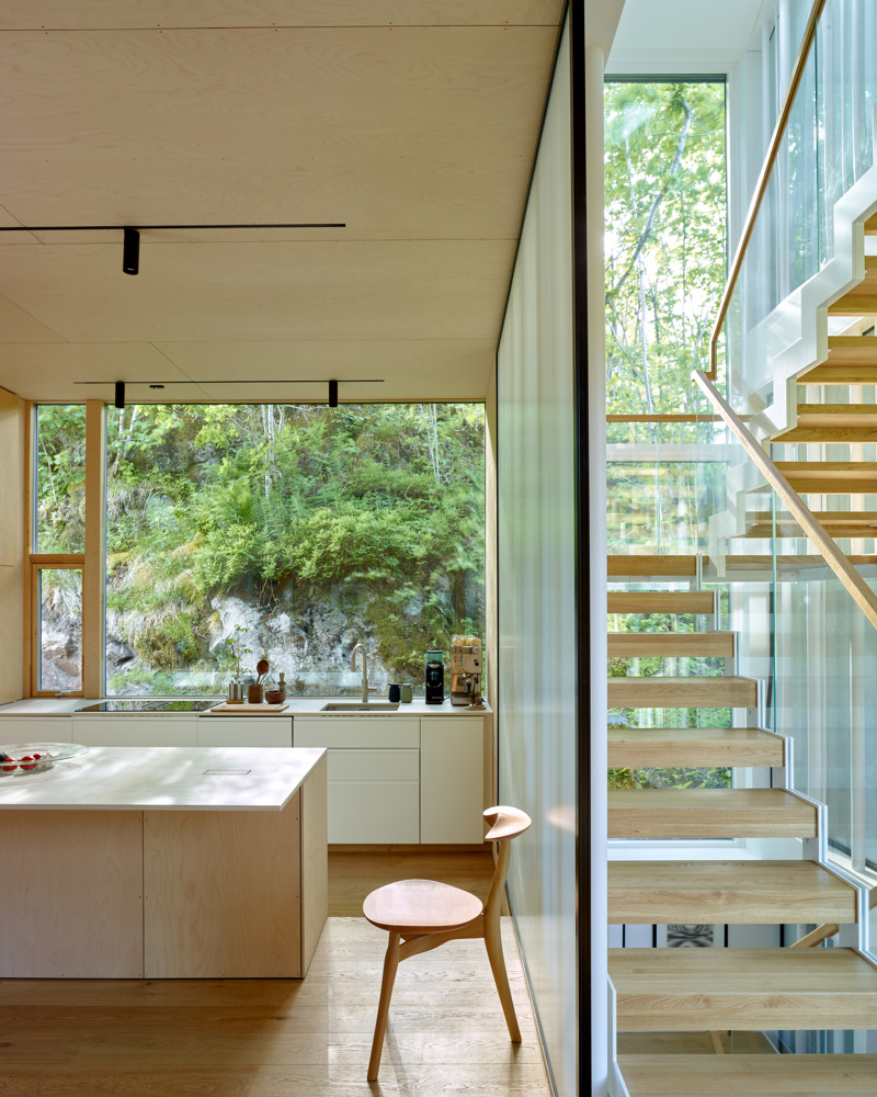 Den bærende ideen bak eneboligen Kvist Knarvik (Kvalbein Korsøen Arkitektur) er «opplevelsen av å bevege seg fra dunkel skogbunn, opp gjennom bladverk og trestammer, til himmellyset i toppen av trekronene», heter det i programmet til Open House Bergen.