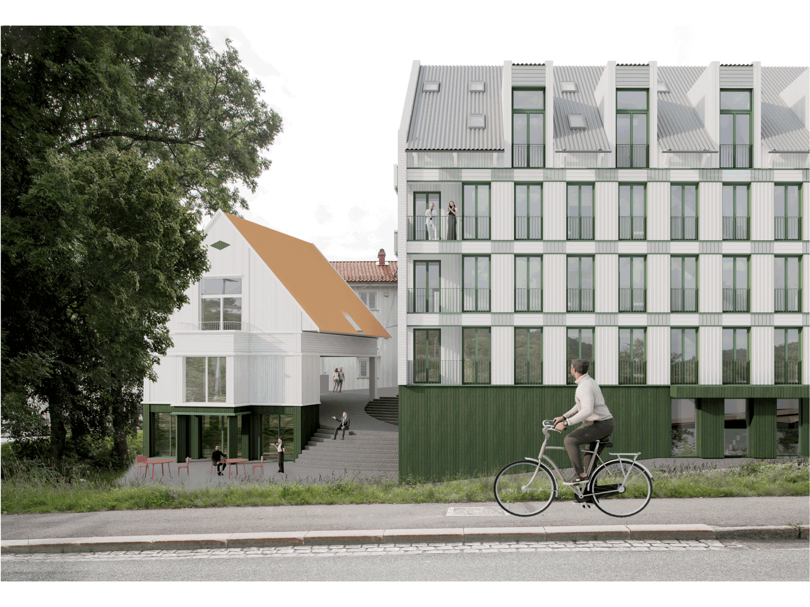 – Prosjektet ligger ved siden av et gamlehjem fra 1920-tallet og forsøker å gi gjenklang med en spesiell nordisk klassisisme fra det tidlige 1920-tallet da tømmerbygninger ofte etterligner tektonikken til bygg i stein, sier Skjeseth.