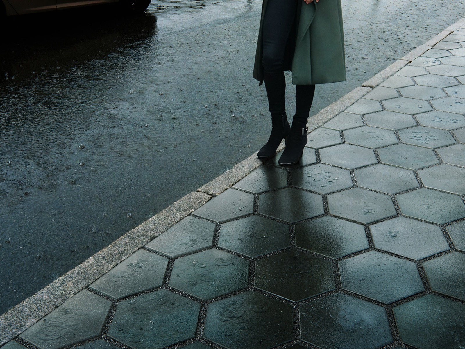Helleprodusent Asak Miljøstein har i flere år forsket på såkalte permeable dekker sammen med Sintef. Resultatet Asak Flyt er formgitt av Snøhetta.