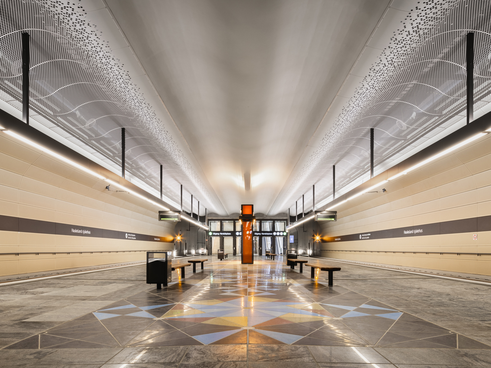 Inni fjellet ligger den, den spektakulære bybanestasjonen under Haukeland sykehus i Bergen, som får Doga-merket for det juryen kaller «et vakkert og forseggjort rom basert på behersket bruk av materialer og sjeldent godt arkitekthåndverk». Prosjektet, tegnet av 3RW arkitekter, omtales som «Bergens nye katedral», er også en påminnelse om betydningen av fellesrommene i samfunnet, mener juryen.
