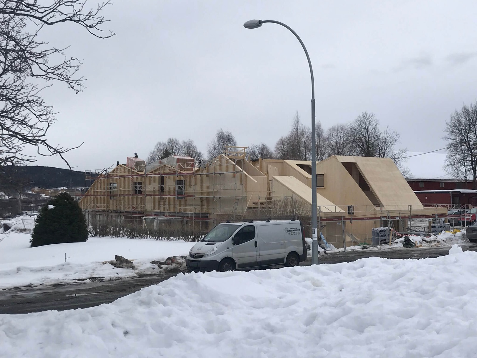 Nortvedt gård barnehage på Kalbakken i Oslo. Bygningsdelene ble montert på stedet som et byggesett, og barnehagen var reist i løpet av få uker.