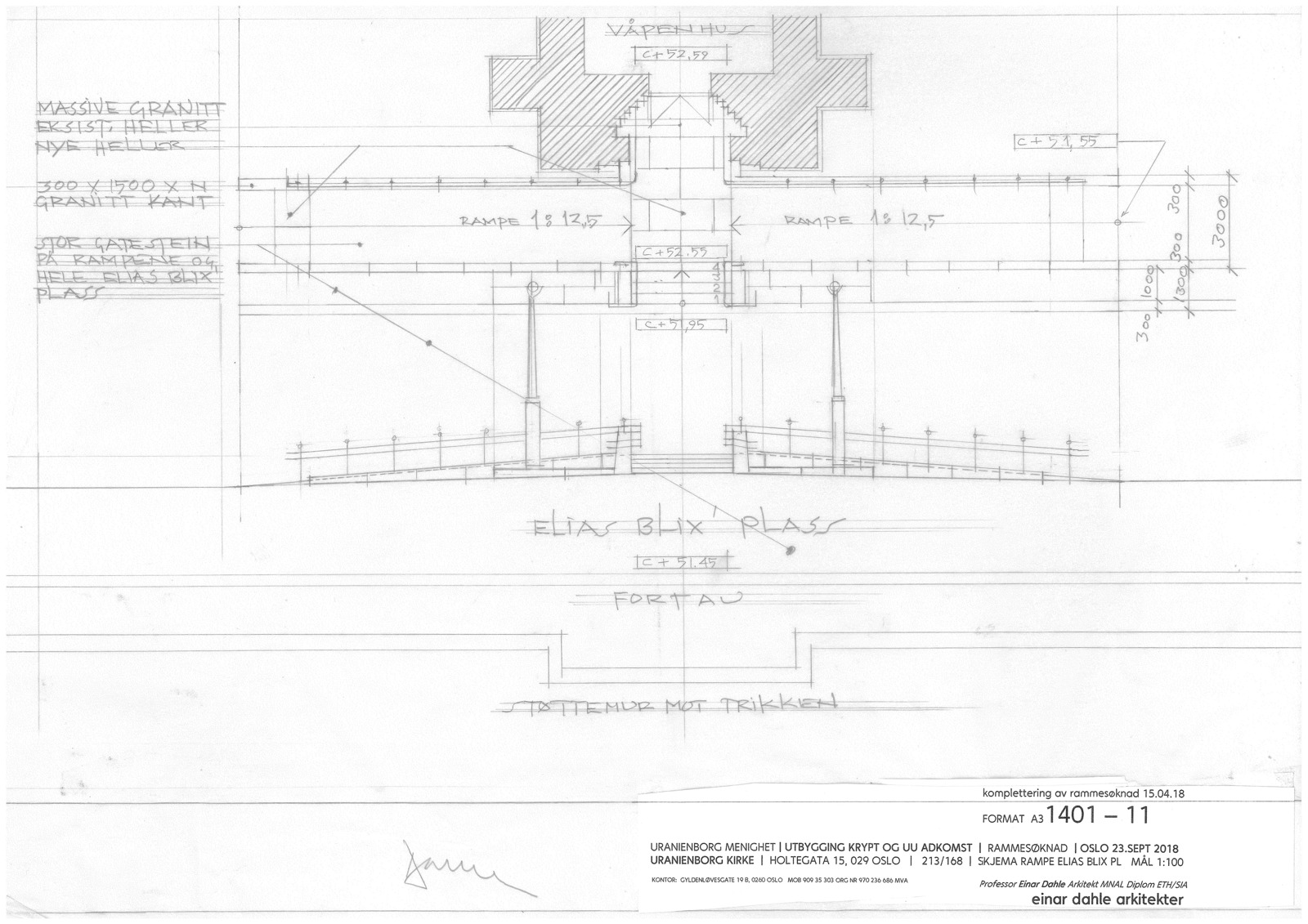 I skissen fra 2018 er det presisert at rampen skal være med storgatestein.