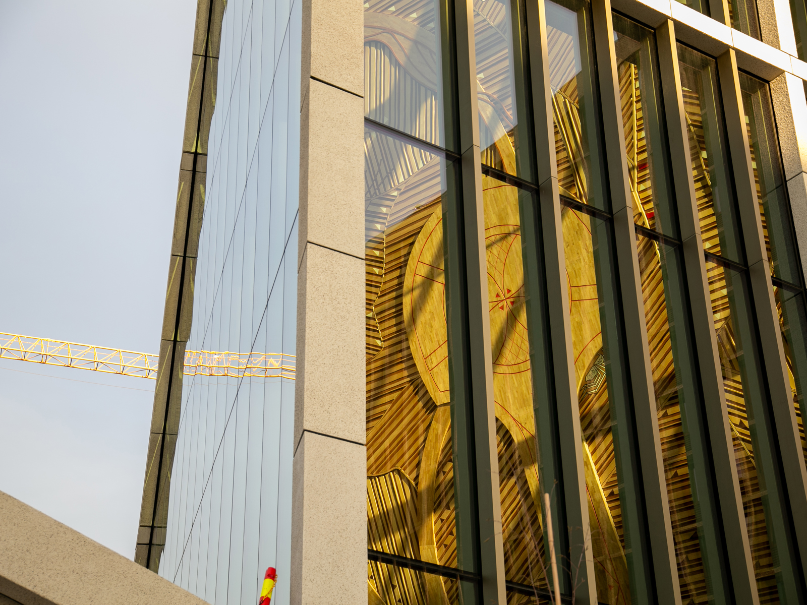 Det enorme kunstverket som pryder inngangspartiet i det nye regjeringskvartalet, ble avduket tirsdag. Når kunst og rom går opp i en høyere enhet, tillater det et høyere budsjett, sier arkitektene.