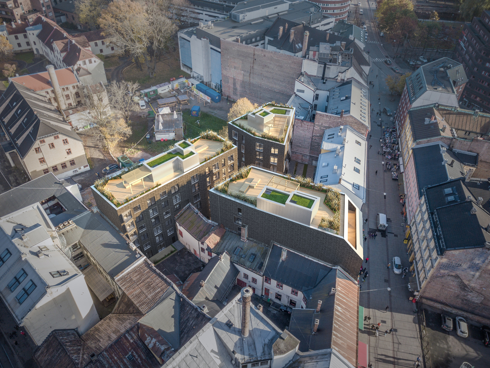 Det er altså Alliance arkitekturstudio som opprinnelig har designet og fått rammegodkjent utbyggingen av kvartalet i Brugata. Rammetillatelsen gikk imidlertid ut i februar, og Arkitektene Fosse & Aasen har sendt inn ny søknad med et noe endret prosjekt.