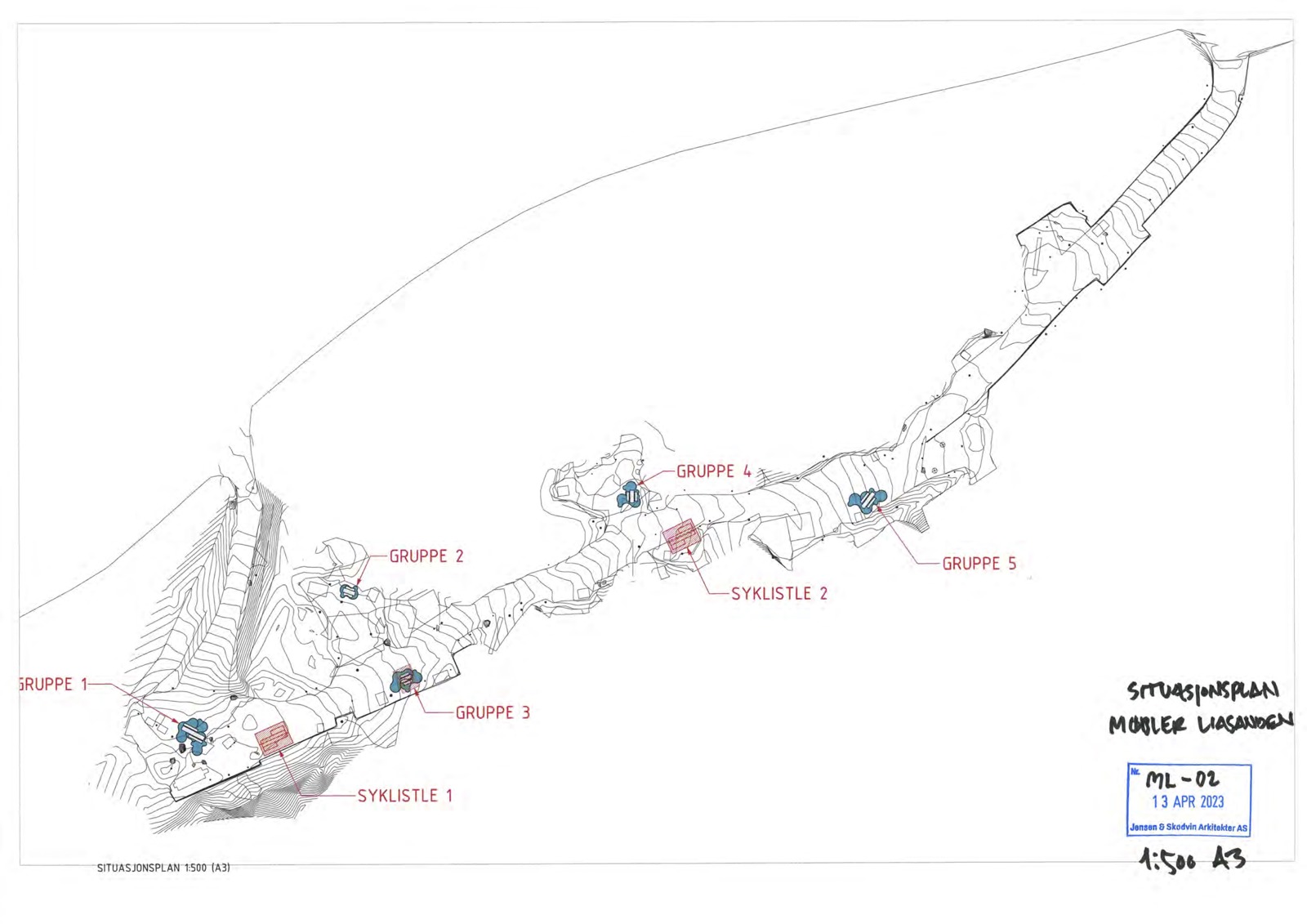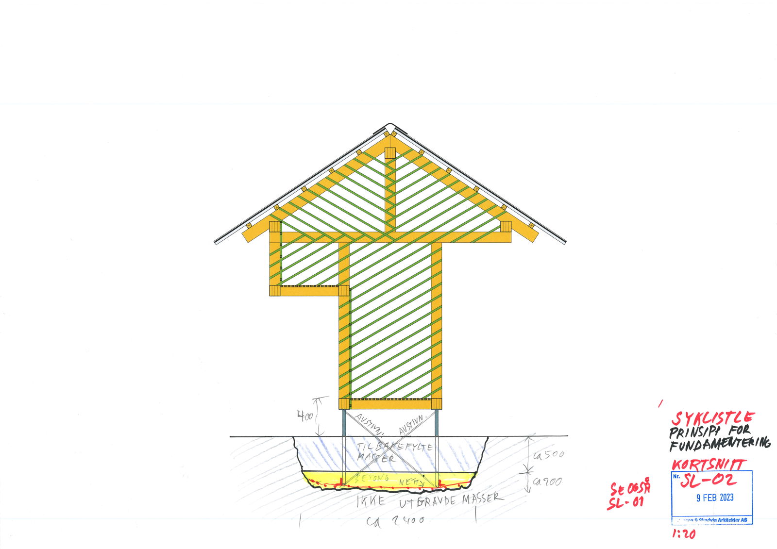 Kortsnitt av de nye overnattingsskurene for syklister.