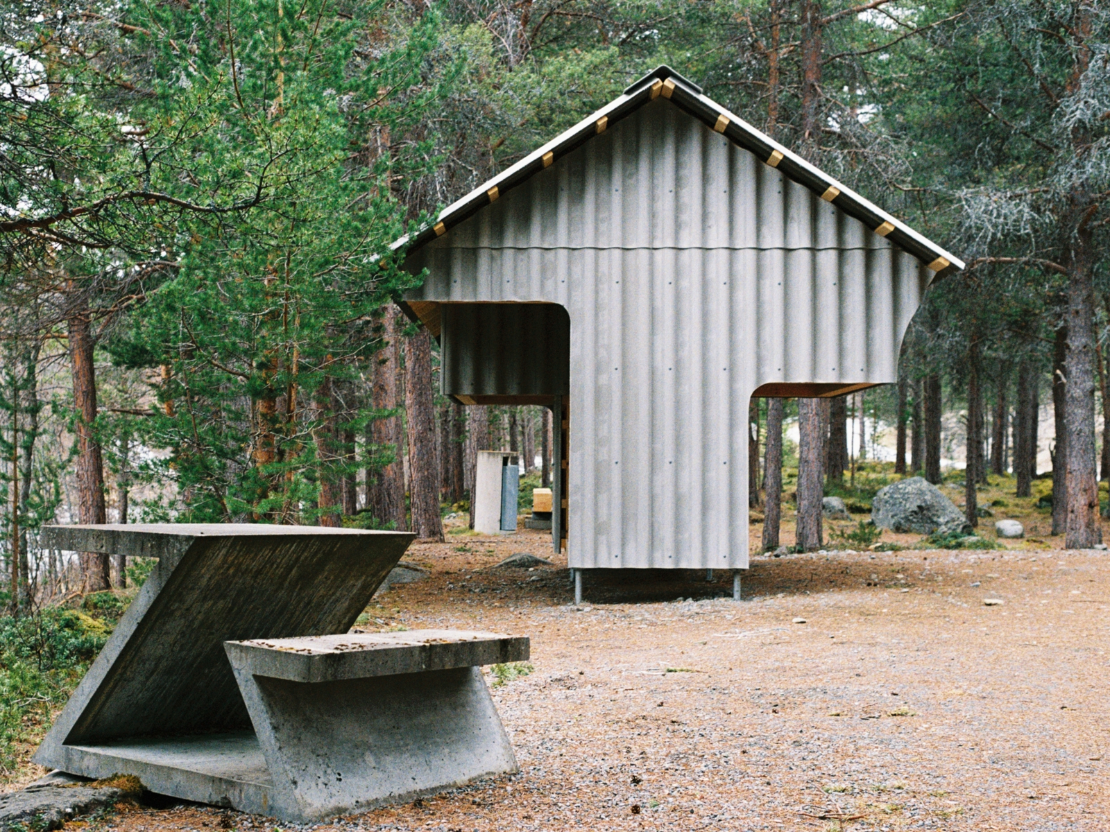 Men nå har naturen fått ro. I mellomtiden har Jensen & Skodvin tegnet to nye skur med tak som skal huse overnattende syklister.