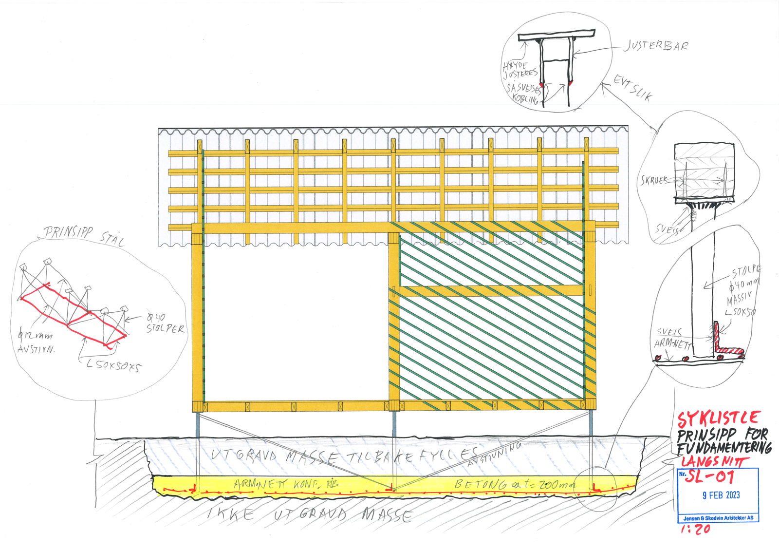 Det er også en liten hilsen til Arkitekturopprøret der i de nye sykkelskurenes arkitektur, forteller Jensen.