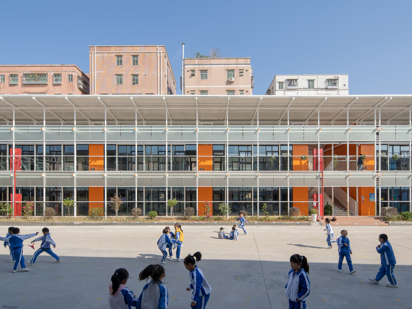 Fremmedspråkskolen ved Longhua Academy of Educational Sciences i Shenzhen i Kina, tegnet av Unitinno Architectural Technology Development Company Limited.