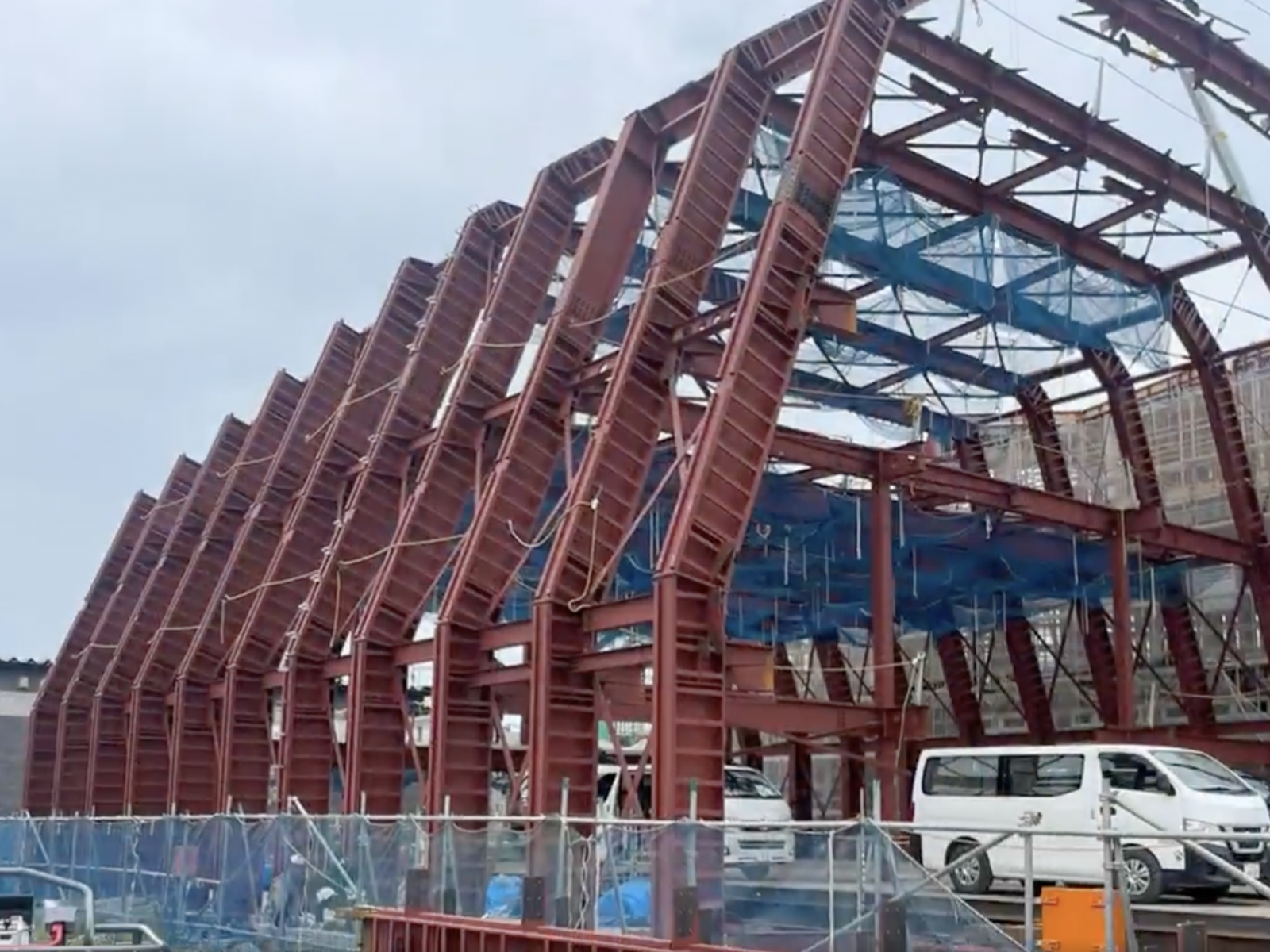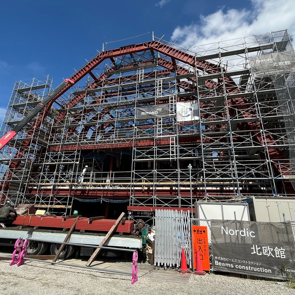 Den nordiske paviljongen i Osaka under oppføring – med stålkonstruksjon.