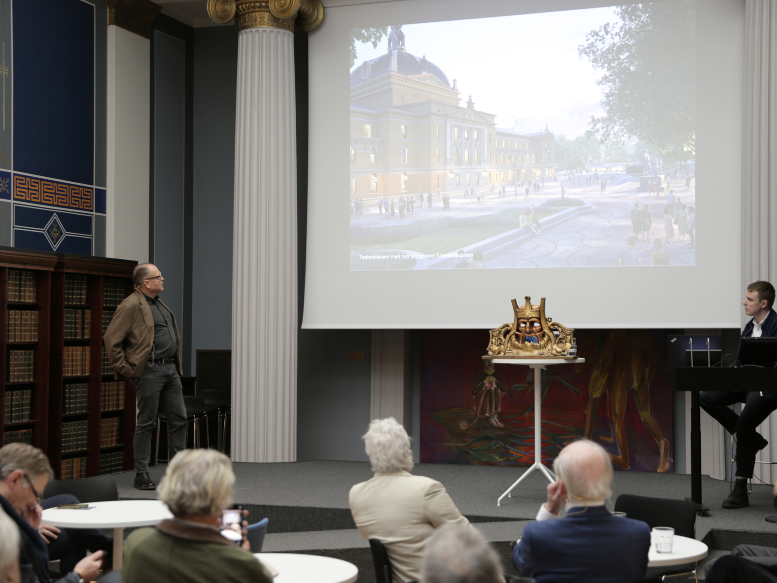 – Da man så at teateret ble for lite tegnet jo Henrik Bull en sånn utvidelse. Det må dere trekke fram, at dette har Bull tegnet, det var hans idé å speile! slår han fast.