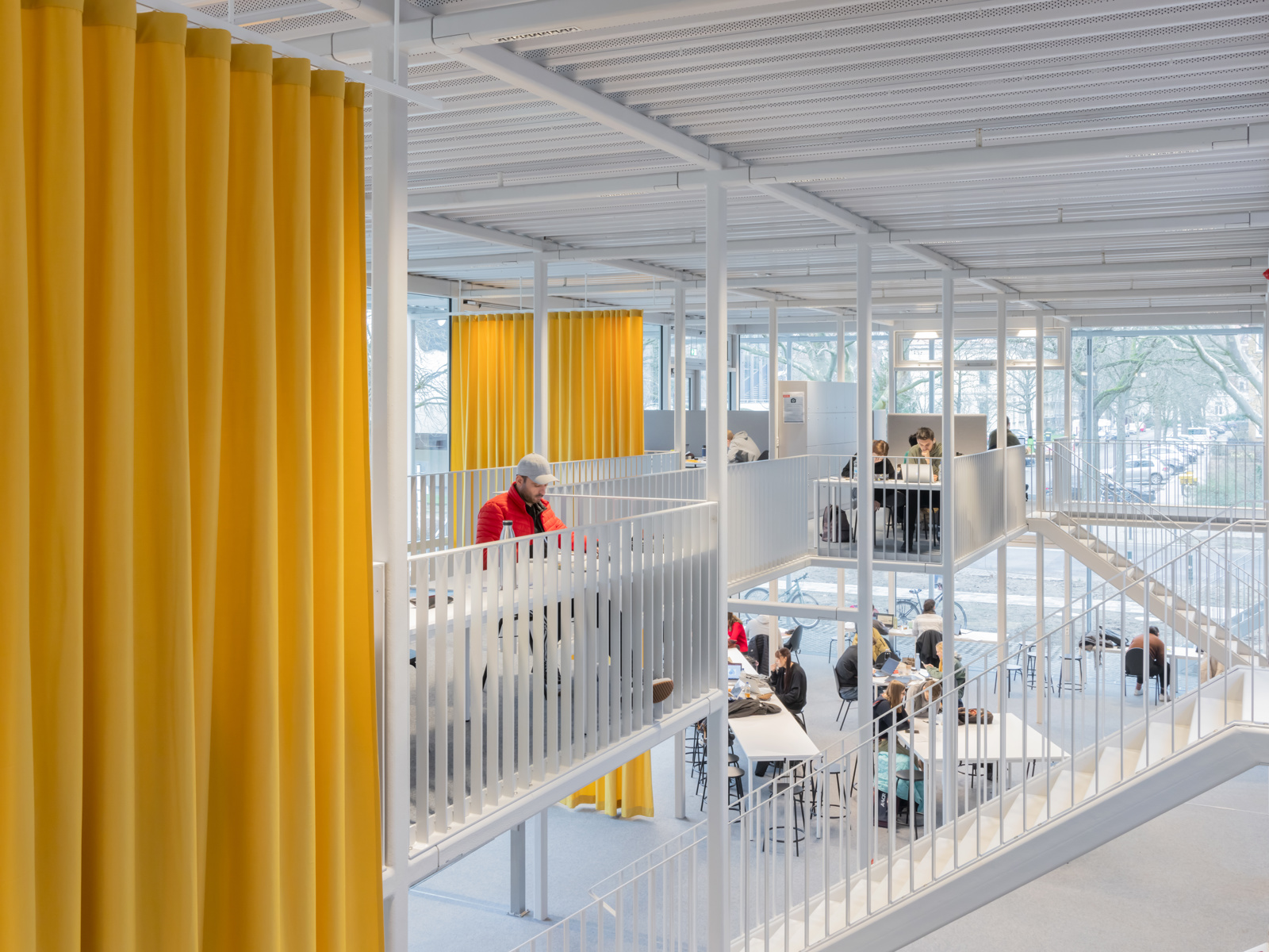 Studenthuset er formet som et åpent for som legger til rette for en rekke ulike studentaktiviteter. Konseptet er utformet slik at planløsningen kan endres ut fra behov. Søylene og bjelkene i stål er laget for å kunne demonteres.