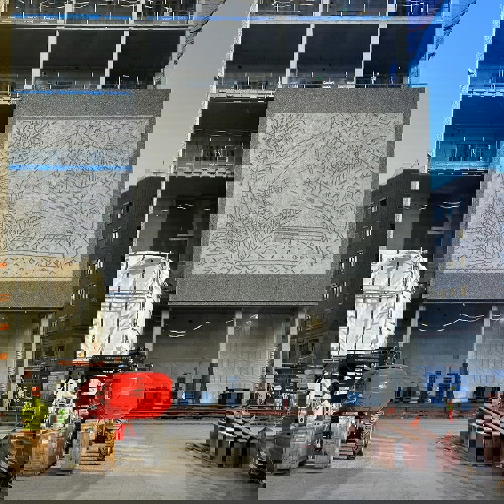 Nå har denne flyttingen skjedd. På en motorisert tralle har «Fiskerne» nå blitt flyttet fra lagringsplassen foran Høyblokken til den nye A-blokken i Grubbegata. Her henger kunstverket og dekker andre og tredje etasje av blokken som åpnes i 2025.