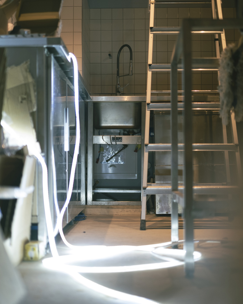 I arbeidet med den øverste etasjen handlet mye om å lete seg frem til lokalets ærverdige storhetstid gjennom nitti år med ymse modifikasjoner. Lokalet på bakkeplan har en mer uformell historie som butikklokale og i den seneste tiden som lukket møtelokale.