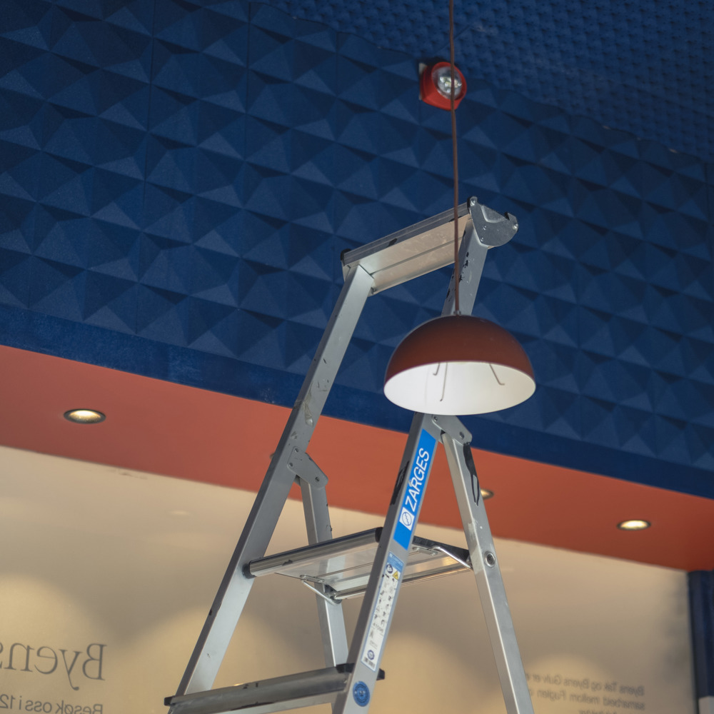 De akustiske platene i tak og øvre del av vegg er laget av kork.