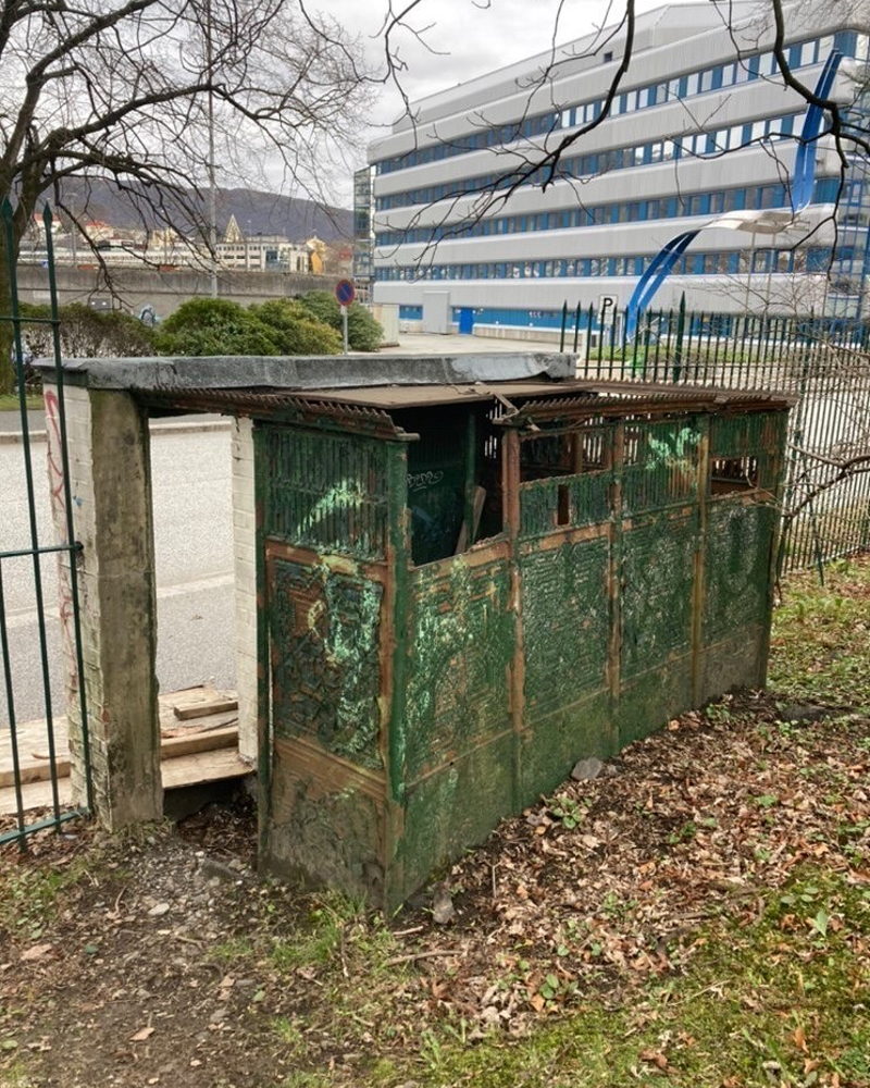 Slik så det fredede pissoaret ut før restaureringen i 2022.