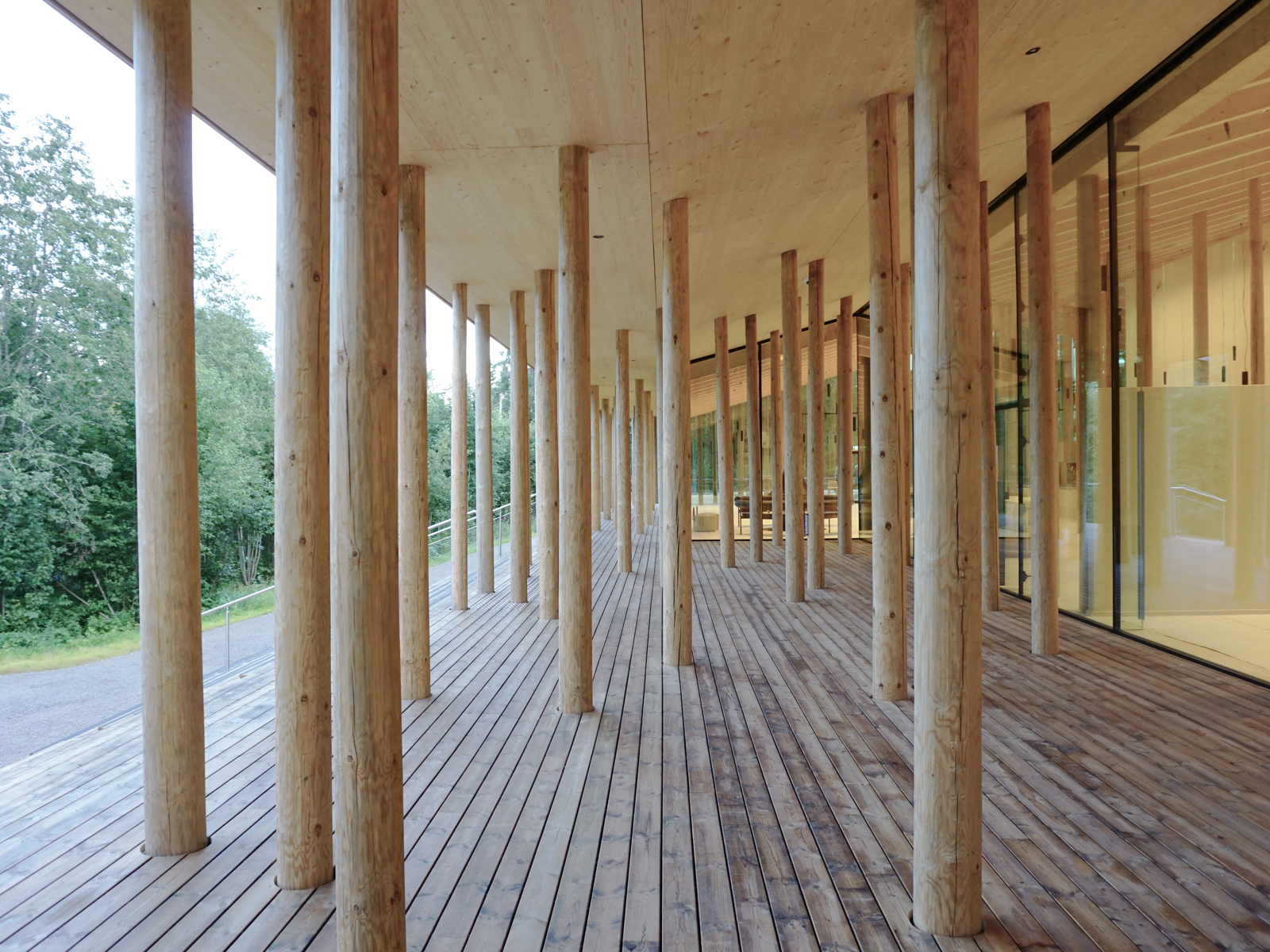 Søyleskogen og store glassfelt er med på å viske ut skillet mellom ute og inne på det nye museet.