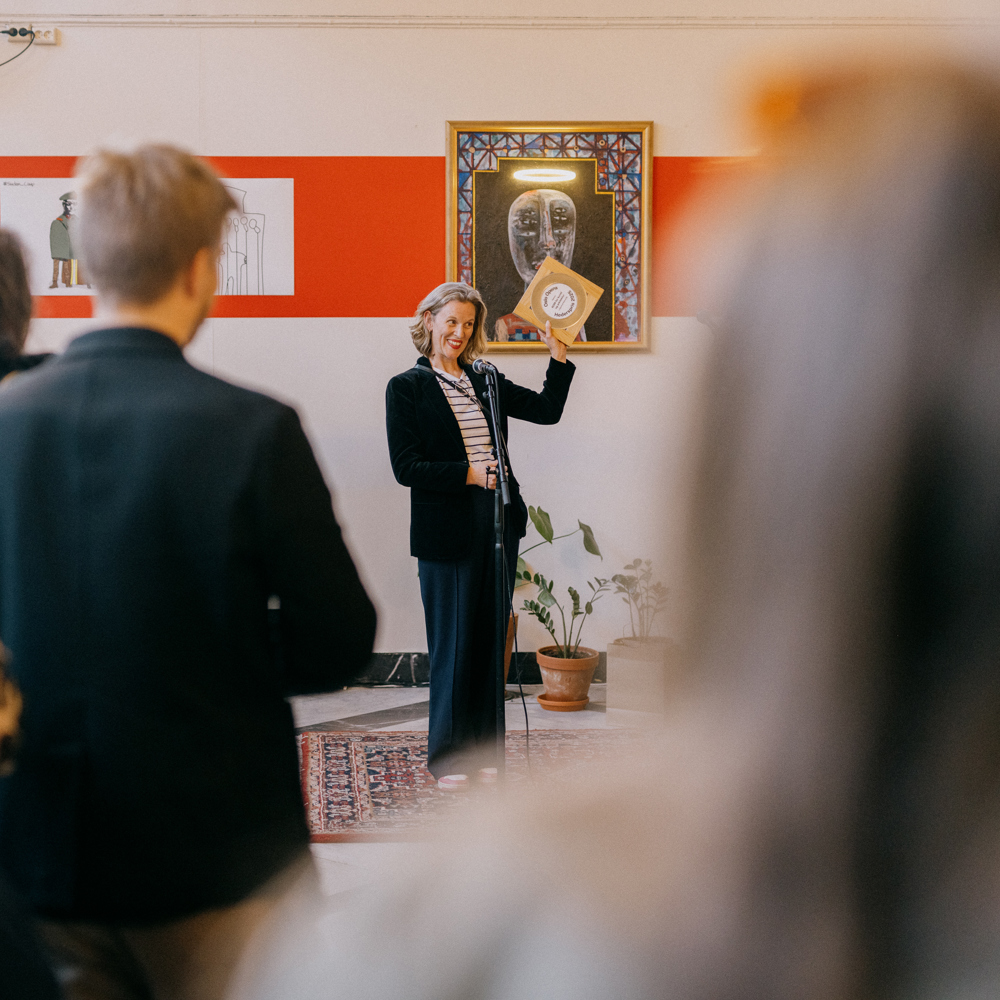 Foto: Jan KhürFredag kveld ble Gjertrud Steinsvåg og ROM for kunst og arkitektur tildelt Oslo Opens hederspris. Prisutdelingen fant sted under jubileumsfesten på Kunstnernes Hus.