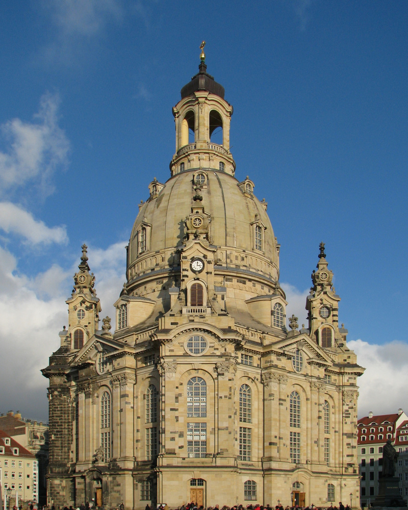 Rekonstruksjonen av Dresden startet med den protestantiske kirken Frauenkirche, påpeker Engh, som mener det har vært bred politisk støtte til gjenoppbyggingen av den klassiske arkitekturen i byen. Foto: Netopyr / Wikimedia Commons