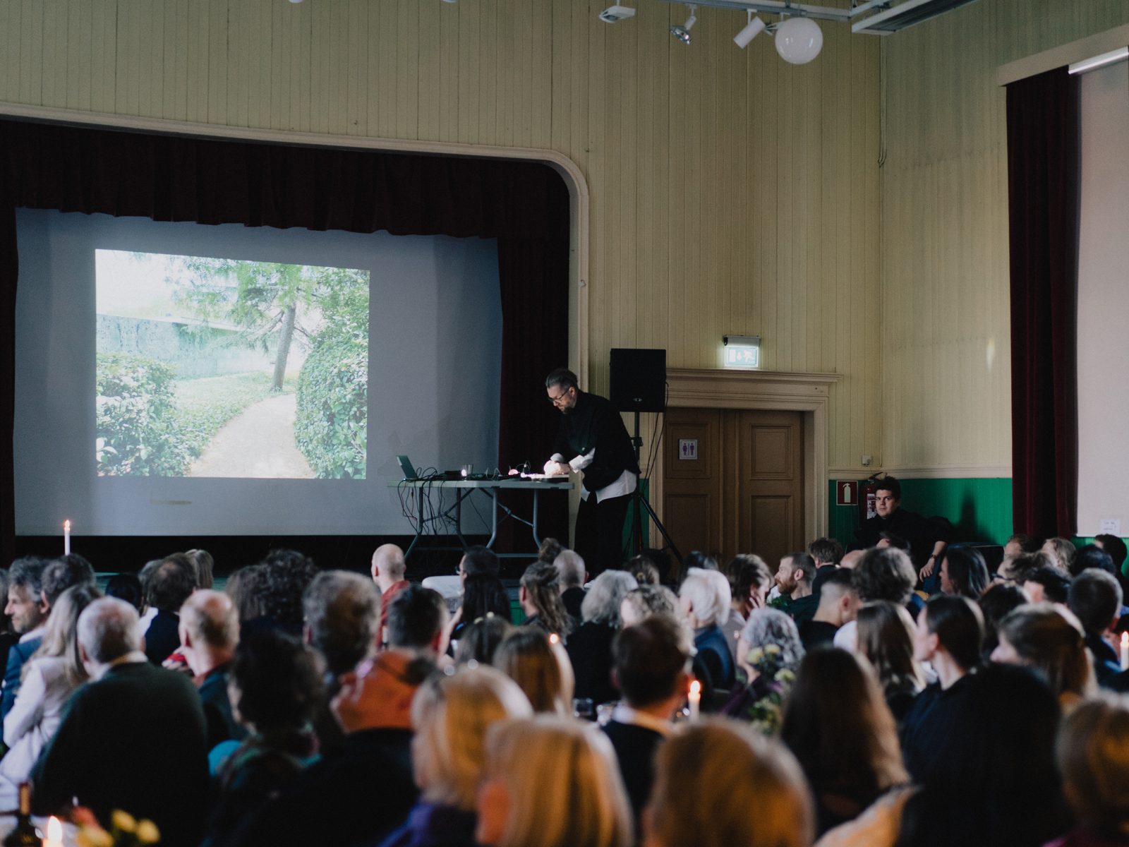 Før festmiddagen i Sangerhuset lørdag hadde arkitekt og lydkunstner Gisle Nataas premiere på sin lydinstallasjon fra Mies van der Rohe-paviljongen i Barcelona, som han om noen uker skal spille i selve paviljongen, under utdelingen av årets Mies-pris.