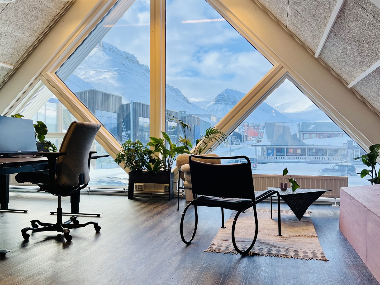 Et rom med utsikt. Slik ser kontoret til AFRY Svalbard ut fra innsiden.