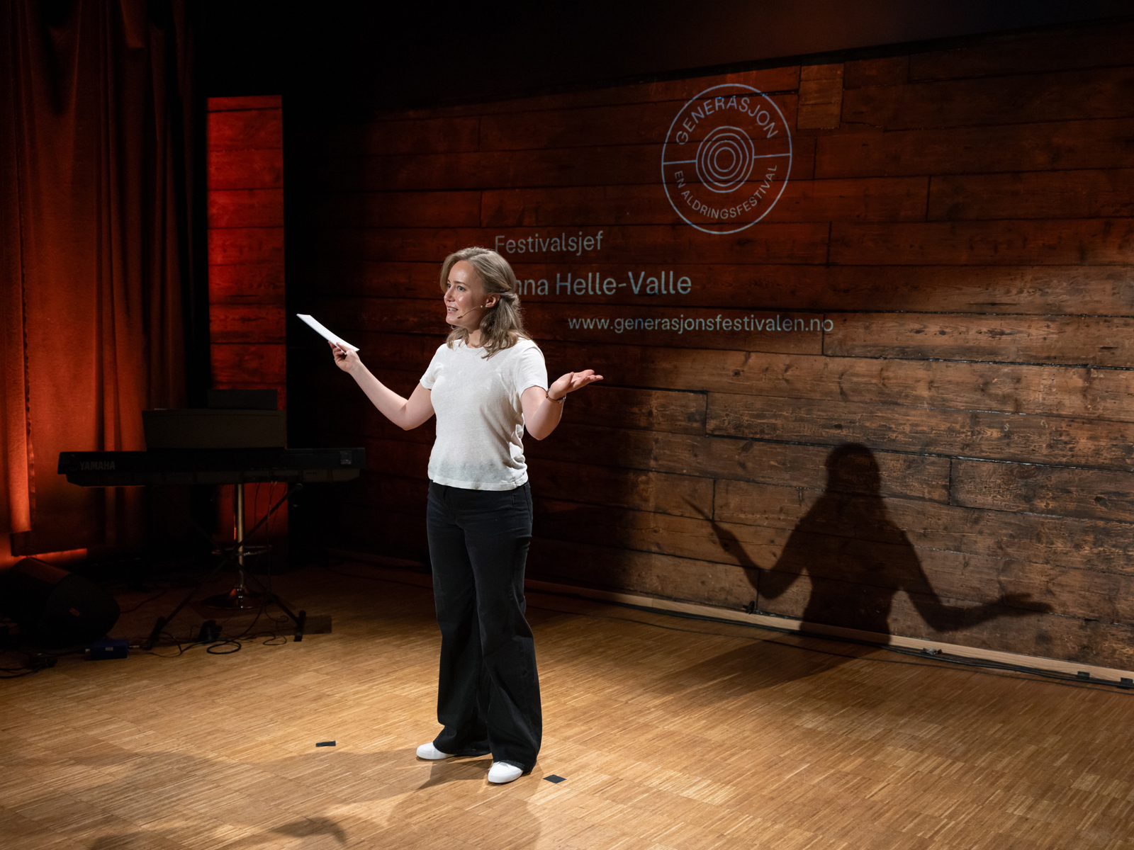 Psykolog Anna Helle-Valle under åpningen av Generasjon – en aldringsfestival. – Festivalen er for deg som blir litt eldre hver dag, var beskjeden fra festivalsjefen.