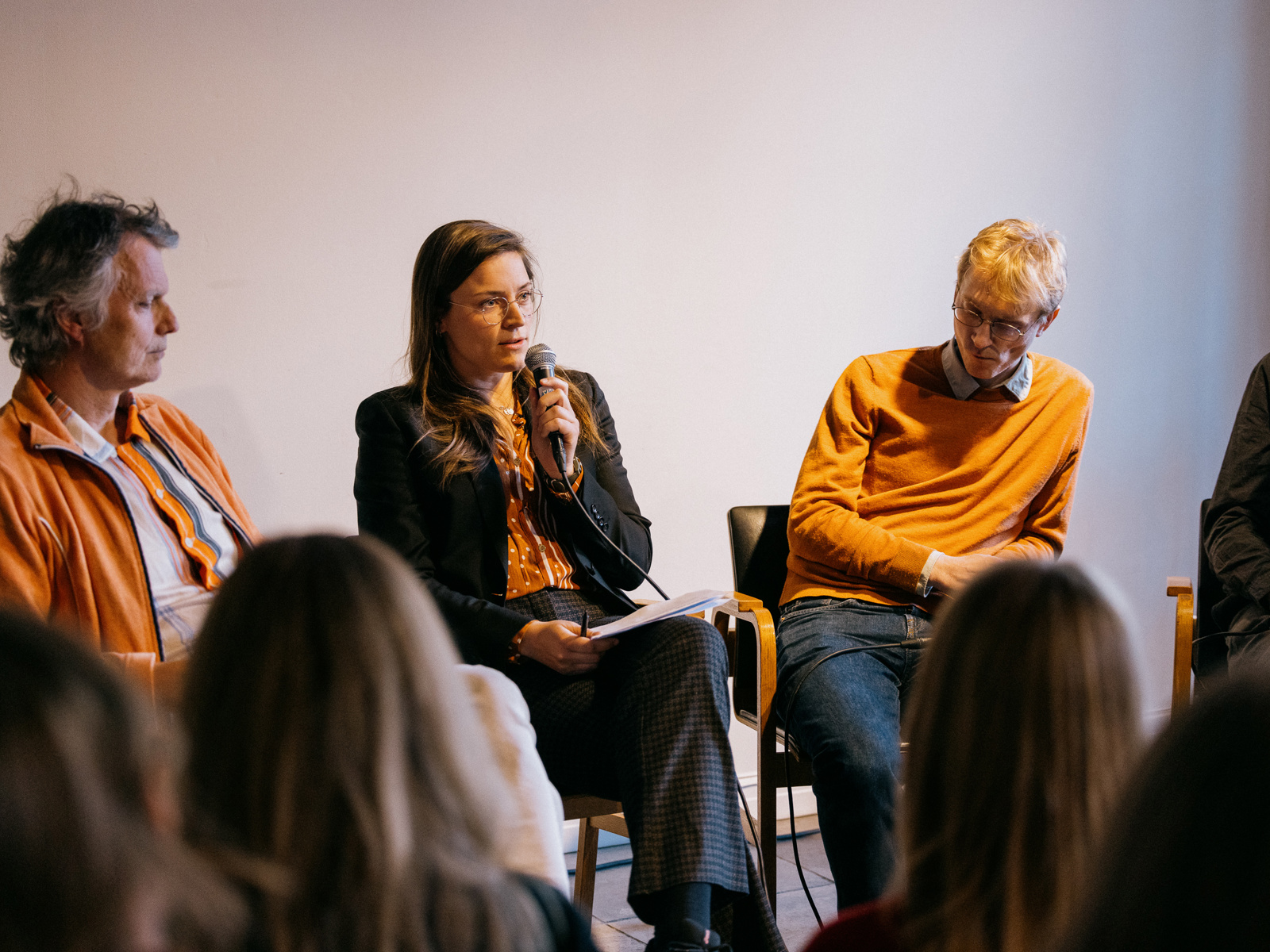 Schnell-duellen har vært medvirkende til Erling Fossens yrkesvalg. Her Fossen og Alf Jørgen Schnell i debatt arrangert av Arkitektur. I midten, arkitekt Marie Hallandvik Hortemo.
