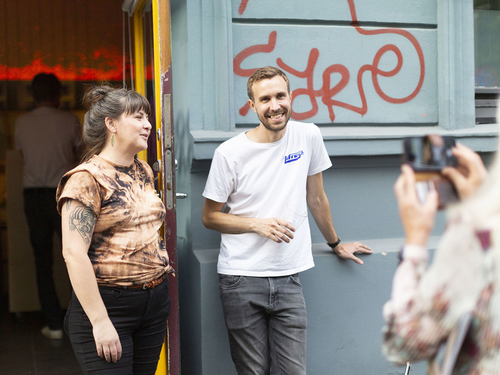 James Finucane, direktør og kunstnerisk leder i Street Art Oslo, er også festivalsjef for Oslo Street Art Festival. Her i samtale med festivalmanager Hanne Ugelstad (t.v.).