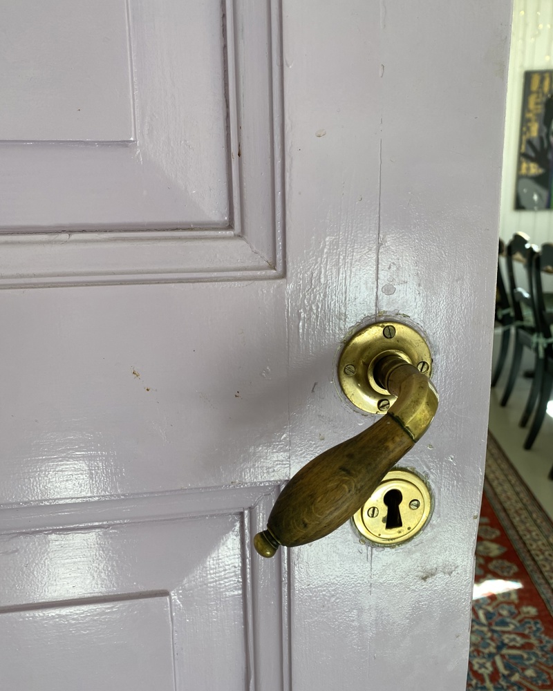 Dørvridere og gamle fyllingsdører er detaljer som bidrar til å fortelle noe om leilighetens karakter og identitet.