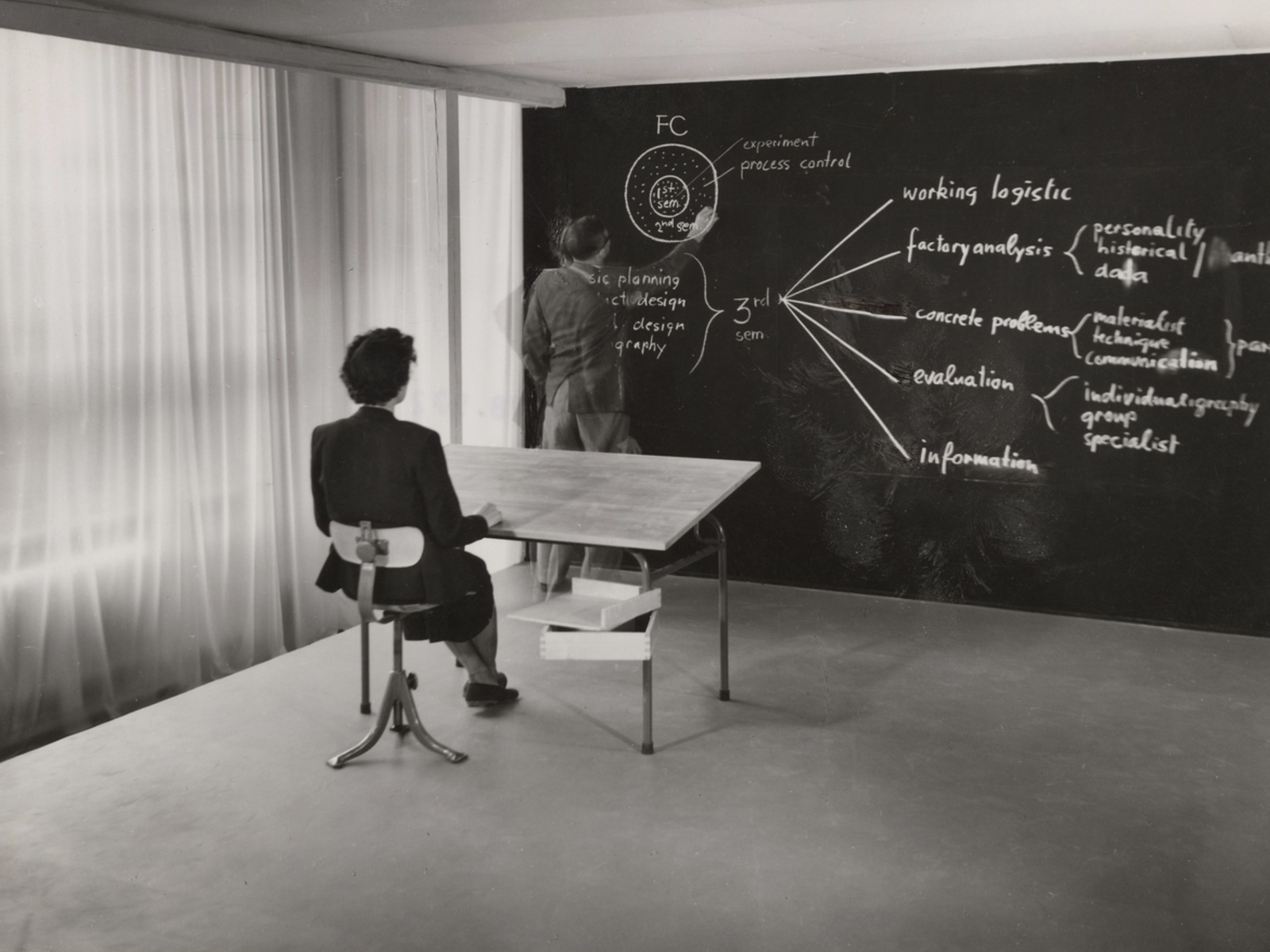 Arkitekt- og interiørarkitektstudenter delte flere undervisningsfag ved SHKS gjennom 1930- og -40-årene. Spesielt modelltegning og materiallære stod sentralt for begge studiene. Undervisningen la dermed til rette for en felles forståelse av rom, konstruksjon og materialbruk – der arkitekturens tekniske disipliner møtte interiørarkitekturens fokus på menneskets posisjon og romlig formgivning.