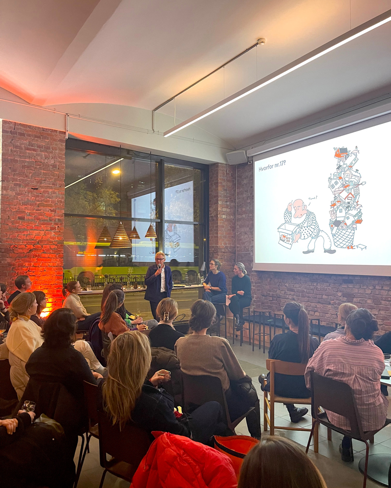 Becker ledet kvelden sammen med Kjersti Hoel Gazzola i Romlaboratoriet, Morten Kaels i Spinn Arkitekter og sirkulærrådgiver Kirsti Svenning. Kaels forteller at byggebransjen er et område der det spesielt må reduseres i klimagassutslipp.