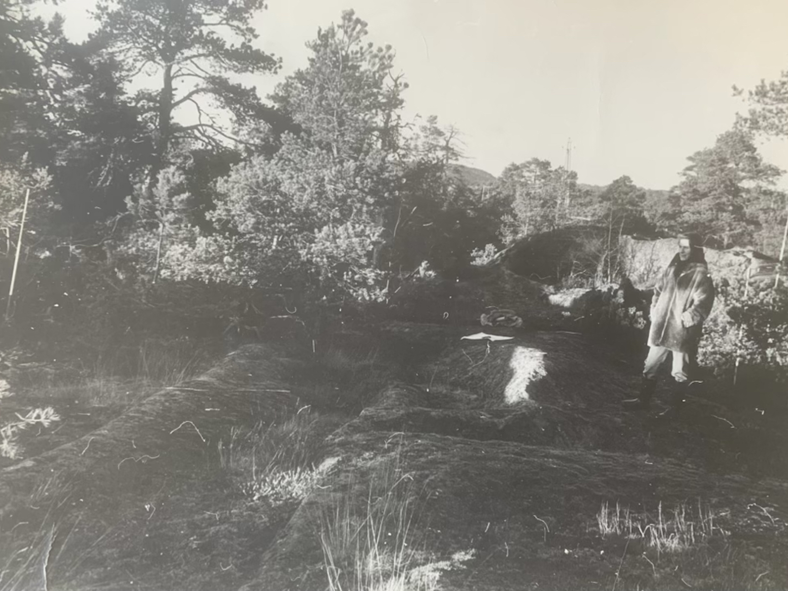 Wenche Selmer på tomtebefaring. Arkitekten kunne overnatte utendørs på en byggetomt og på den måten bli bedre kjent med terrenget og dets kvaliteter.