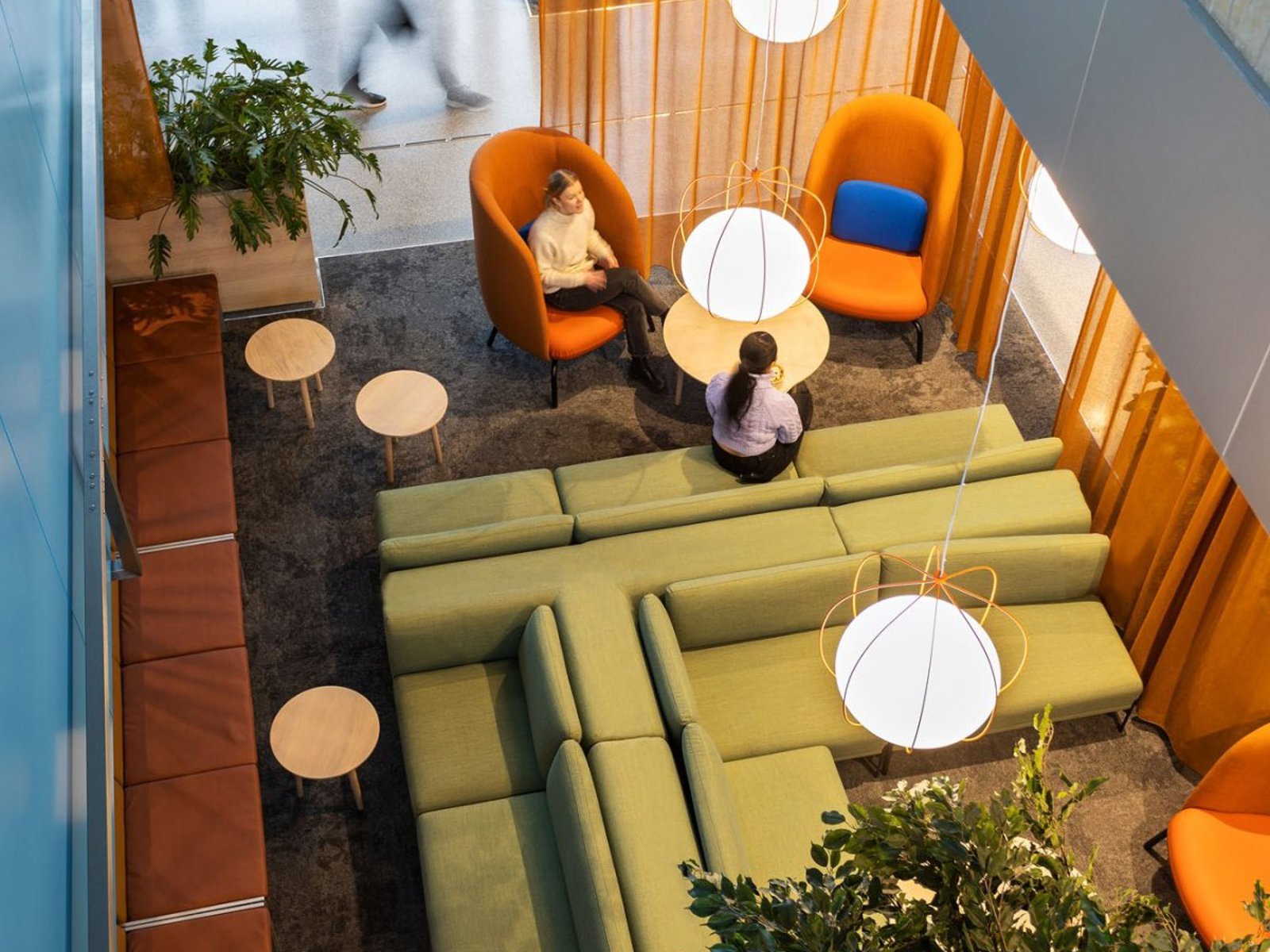 Link Arkitektur Oslo fikk gjennom rammeavtale med Høgskolen i Østfoldoppdraget som eneste rådgiver for møbleringen av nye vrimlearealer på deres campus i Halden.