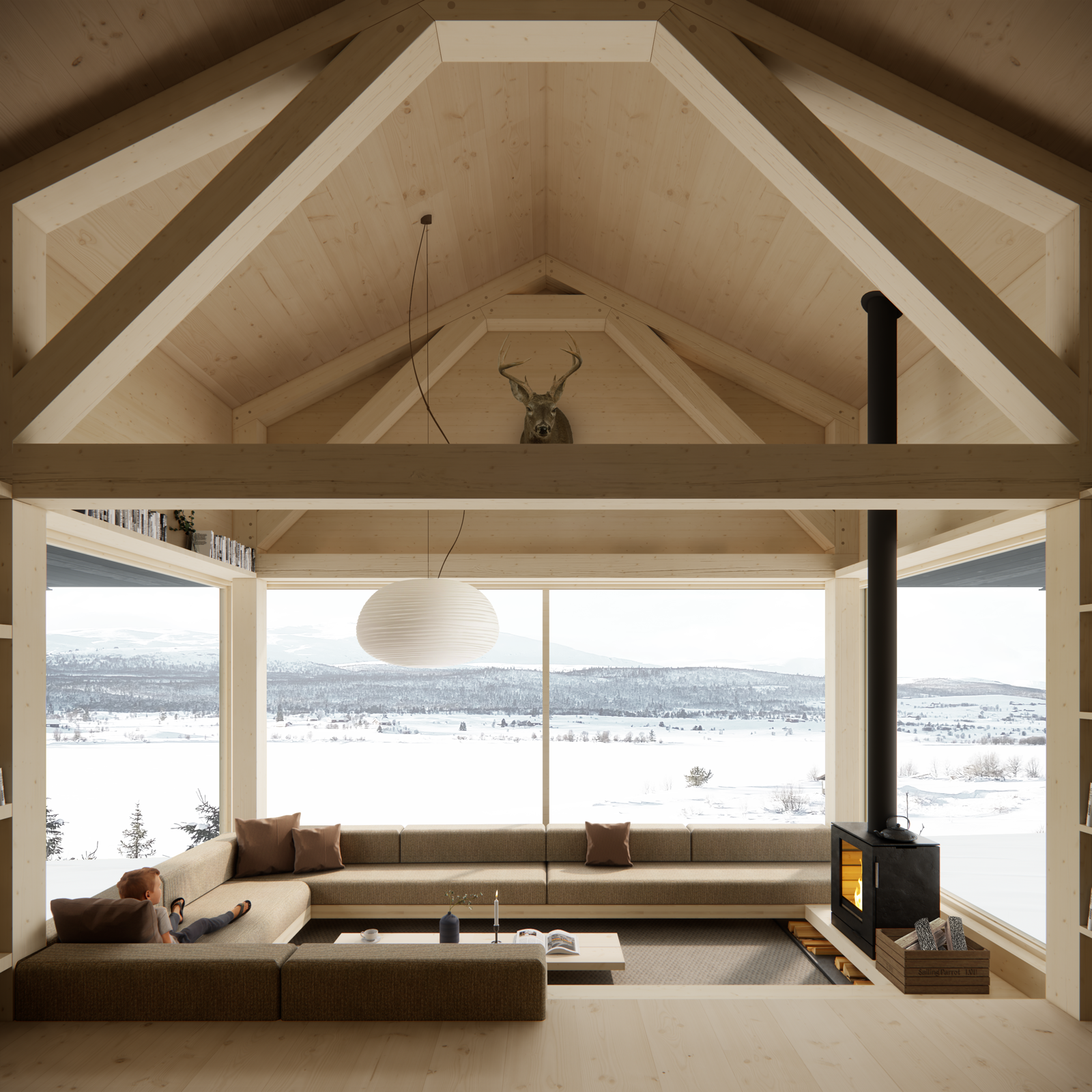 LJBs forslag til nye hytter er preget av en tøyelig, synlig konstruksjon, med en romslig hems som ikke lager tellende bruksareal.