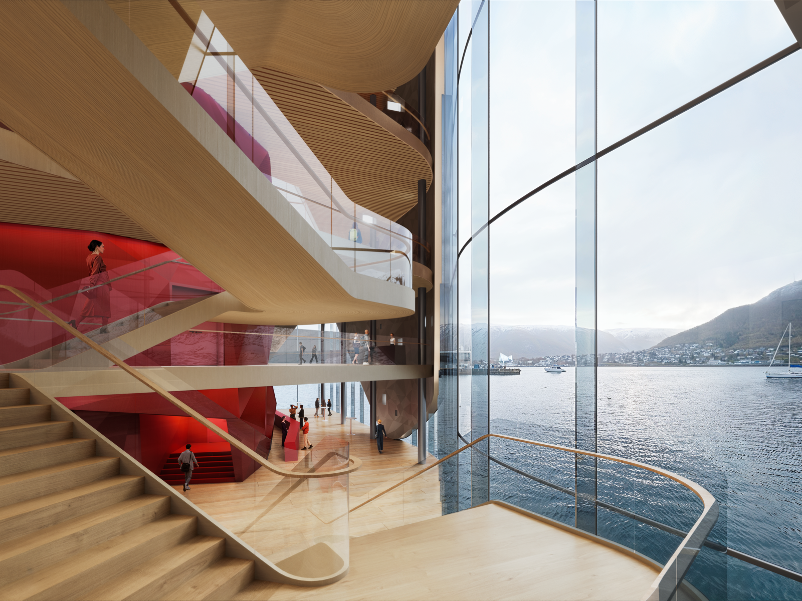 – Den arkitektoniske utformingen er inspirert av omgivelsene og naturen, som sømløst integreres med miljøet. Det står stolt i hjertet av byen og legemliggjør ånden i Tromsø», sier partner og arkitekt ved ALA Architects, Juho Grönholm, om bygningen.