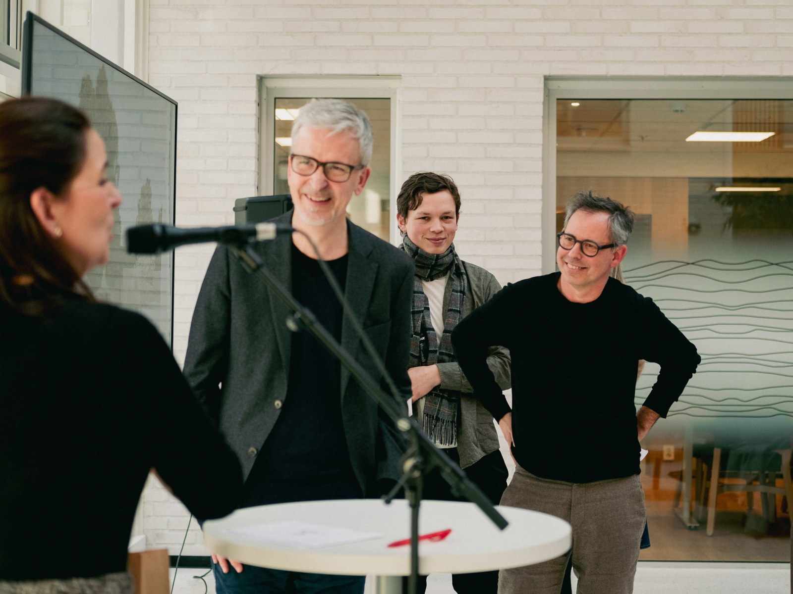 Erik Langdalen (Erik Langdalen arkitektkontor), Aksel Akselsen Falkanger og Odd Øverdahl (Asplan Viak) ble annonsert som vinnere i kommunegården i Sandvika torsdag.