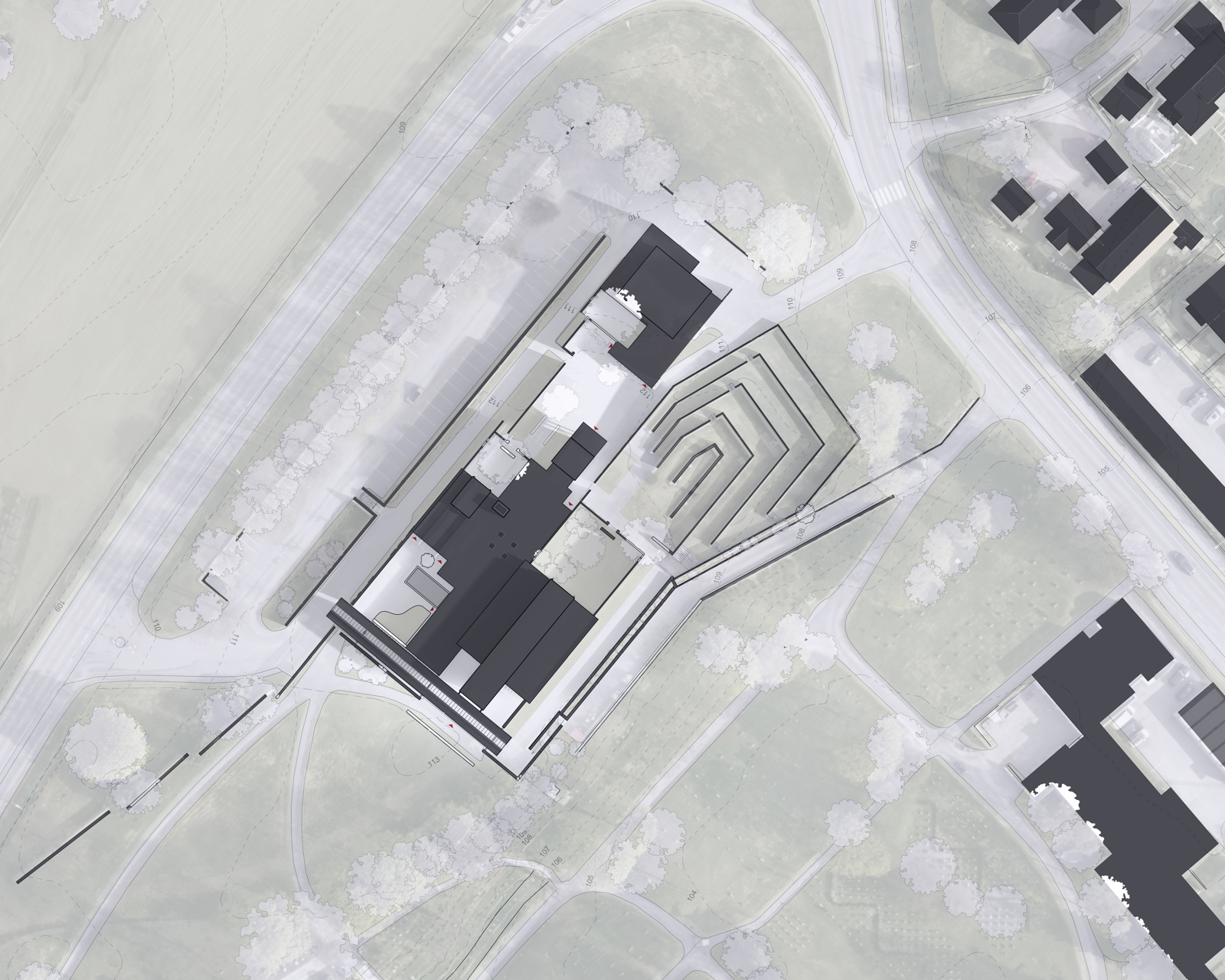 Odd Øverdahl i Asplan Viak påpeker at et overordnet grep har vært å bygge videre på Enghs arkitektursystem sømløst, og videreføre den langstrakte aksen som strekker seg fra Haslum kirke.