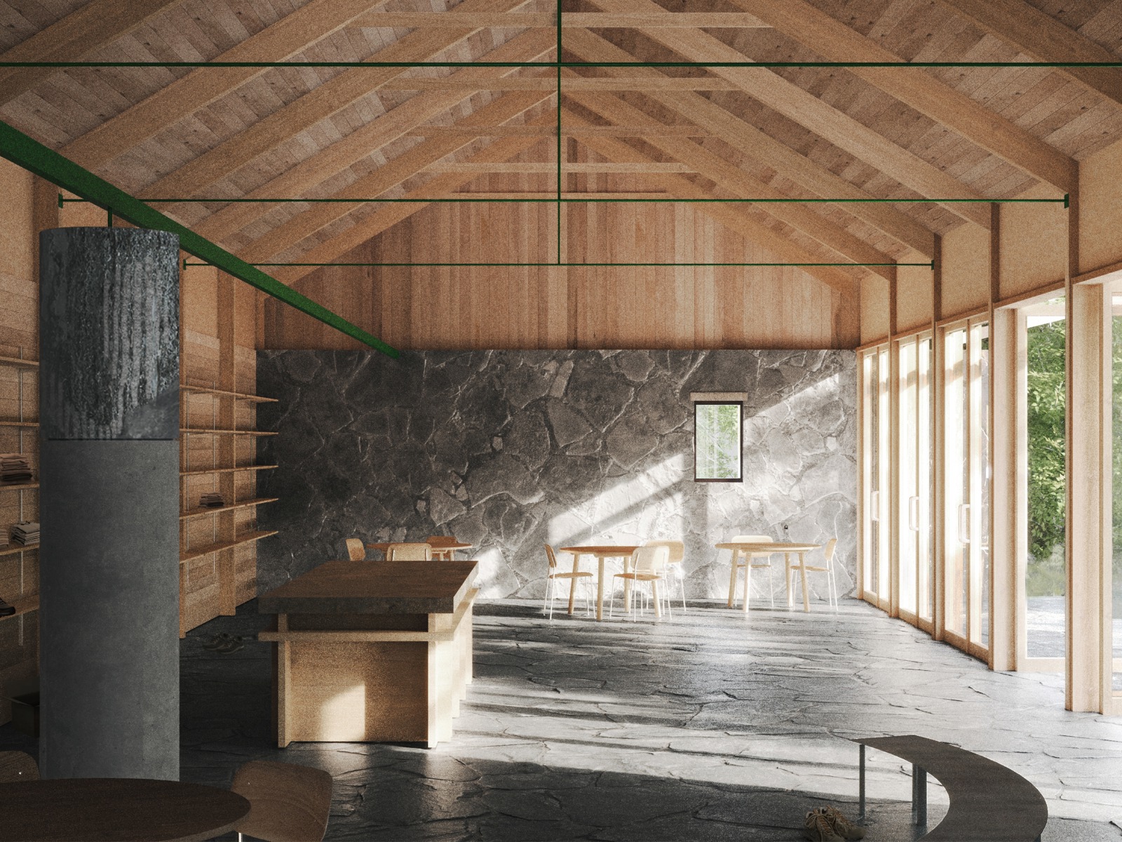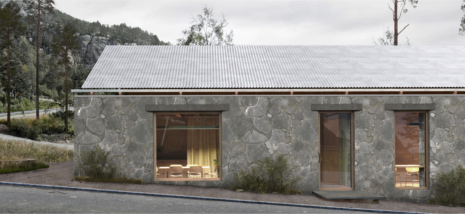 Den tradisjonsbaserte materialbruken med lødd steinmur, rammekonstruksjon i tre og tak kledd med sinusplater i metall knytter an mot lokal byggeskikk, mener juryen.