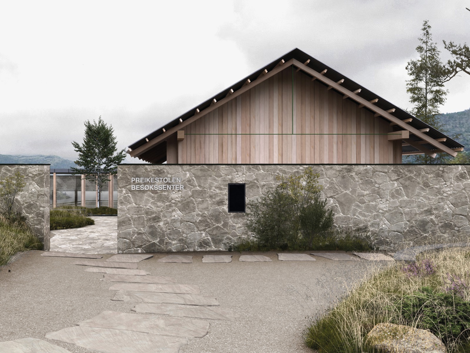 Illustrasjon: Håkon GrundtStudio 10000 skal tegne nytt besøkssenter ved Preikestolen. Det ble klart da vinneren av arkitektkonkurransen ble offentliggjort onsdag.
