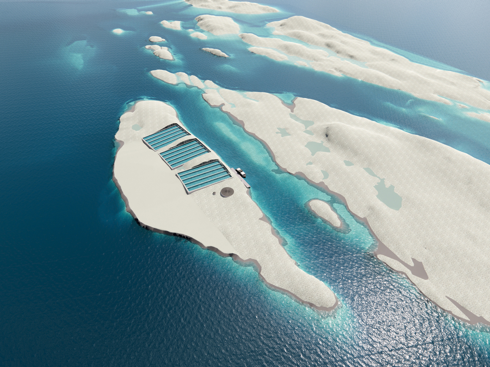 Boarch arkitekter har på vegne av lakseoppdrettsselskapet Gigante Salmon tegnet oppdrettsanlegget på Feøya som benyttes som grunnlag i den pågående plansaken. Foto: Boarch arkitekter a.s
