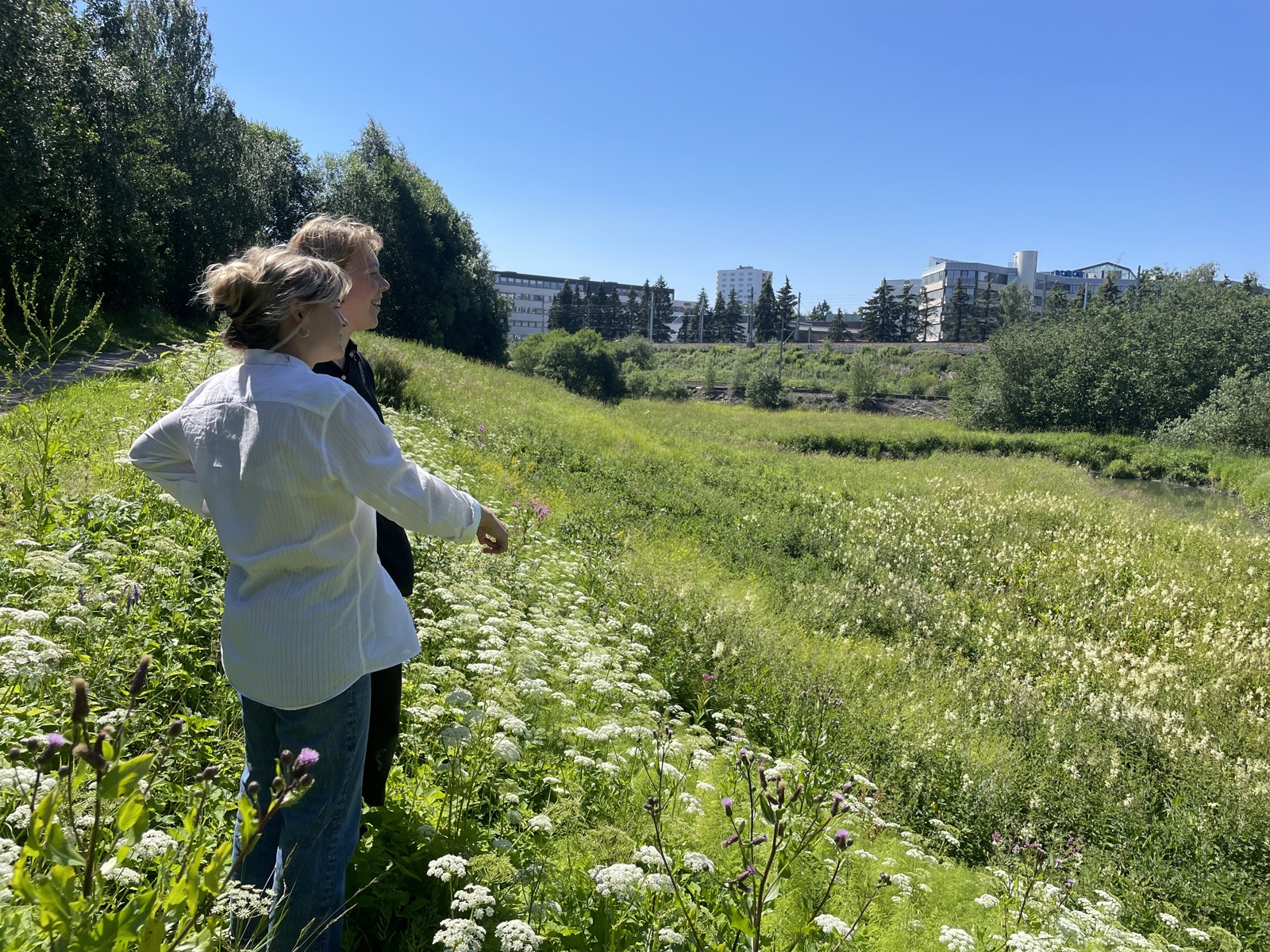 Arkitektene Tuva Marthinsen Eidsten og Una Pettersen Nakstad speider utover et av de grønneste partiene av Alnaelva. Den nesten usynlige elven er her også på sitt giftigste, med blant annet rekordstore mengder PCB.